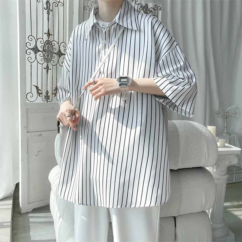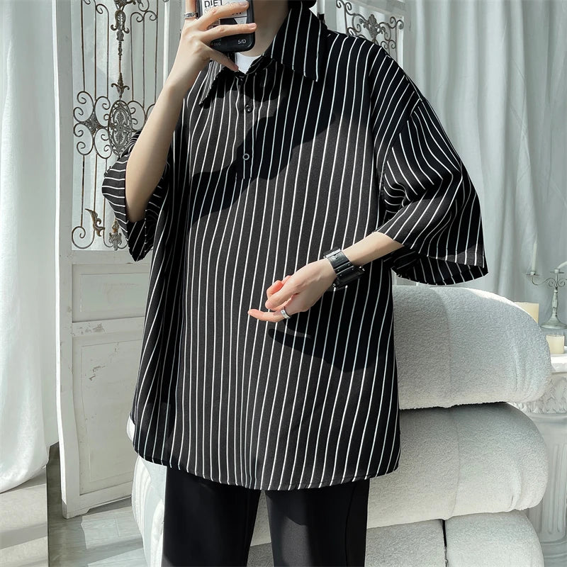 Told Tale Male Simple Stripe Polo Shirt Men Clothing Loose Casual Men's Shirts Summer Male Short Sleeve Shirts Pullover