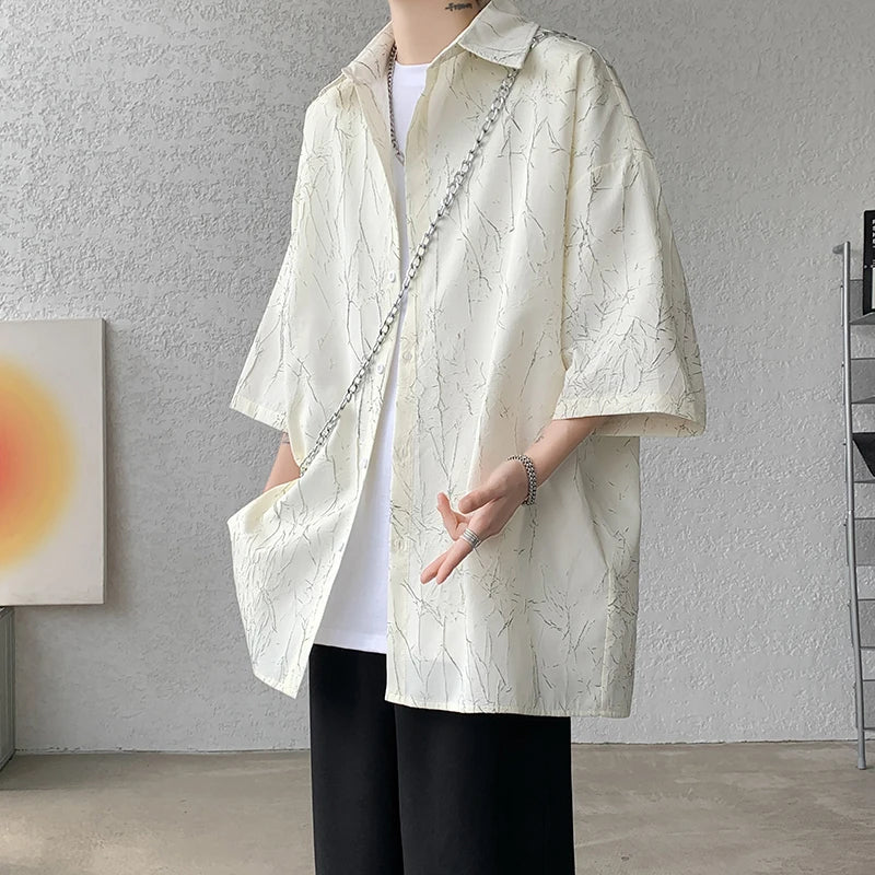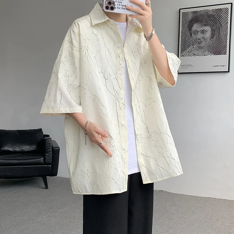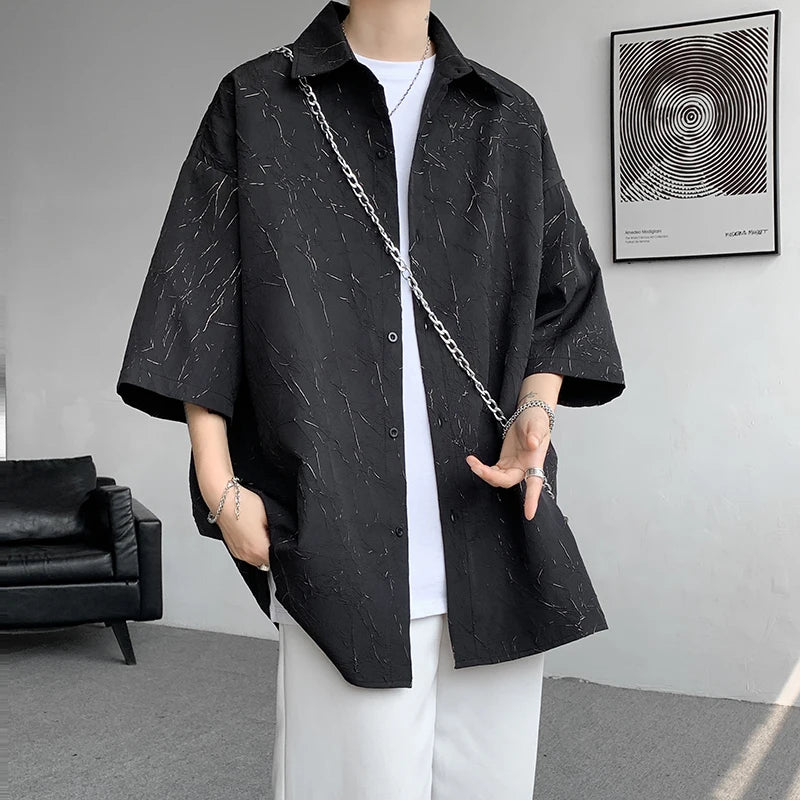 White/Black Men Shirt Texture Lapel Short Sleeve Korean Casual Shirts High Quality Streetwear Summer Leisure Men Clothing