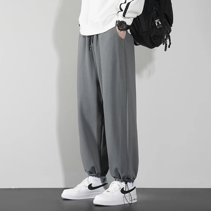 Elegant Fashion Harajuku Slim Fit Ropa Hombre Loose All Match Sport Casual Pants Solid Pockets Straight Cylinder Leggings
