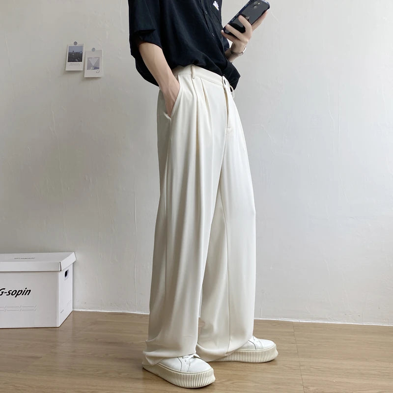 Black White Suit Pants Men Fashion Social Mens Dress Pants Korean Loose Straight Casual Pants Mens Office Formal Trousers M-2XL