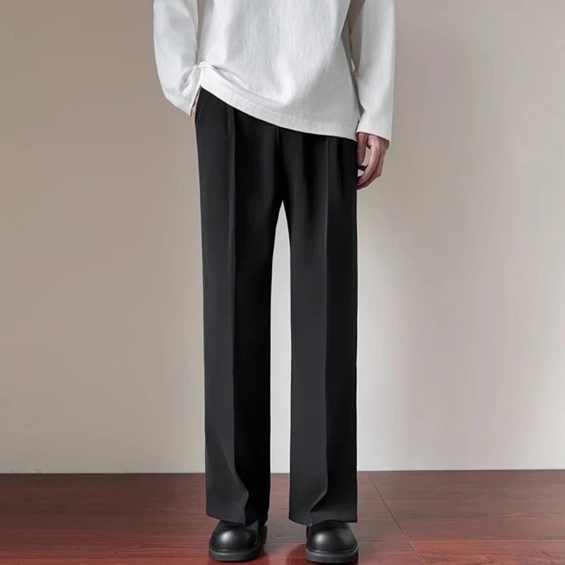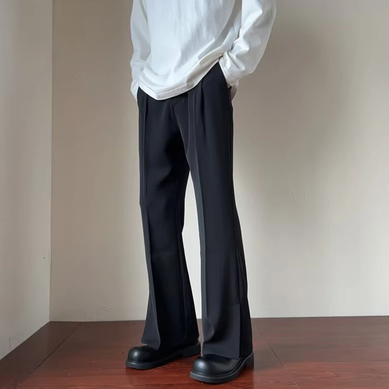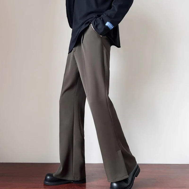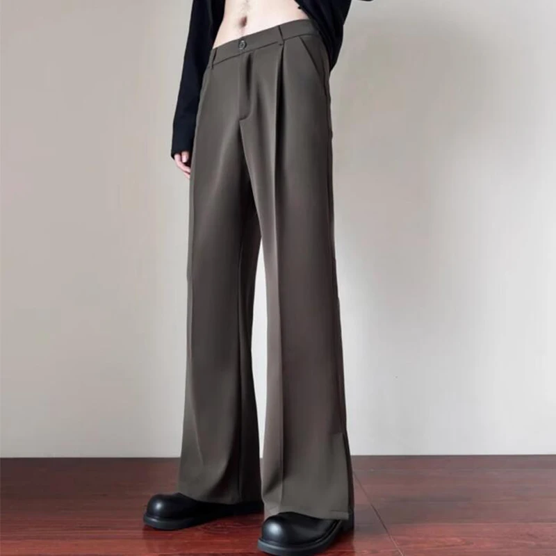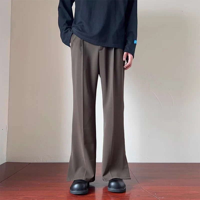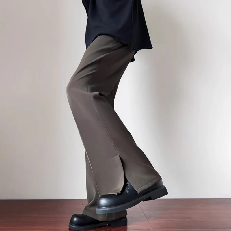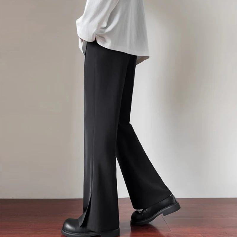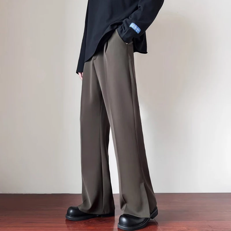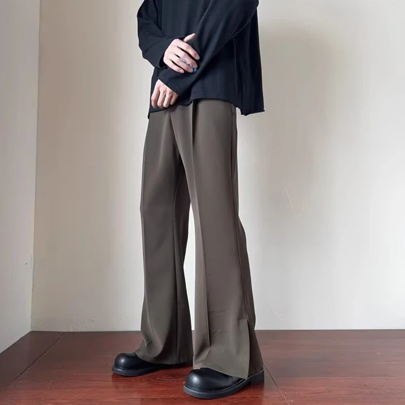 Casual Solid Color Side Slit Flared Pants Mens Streetwear Fashion Loose Straight Trousers Men Summer Leisure Ice Silk Pants