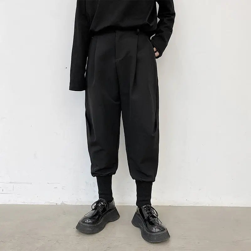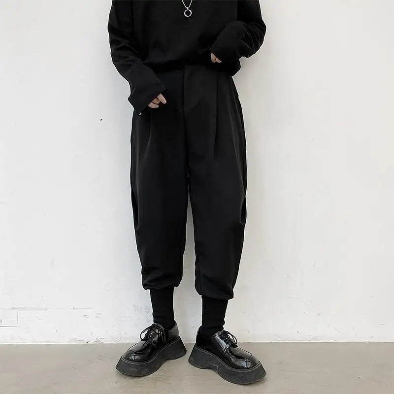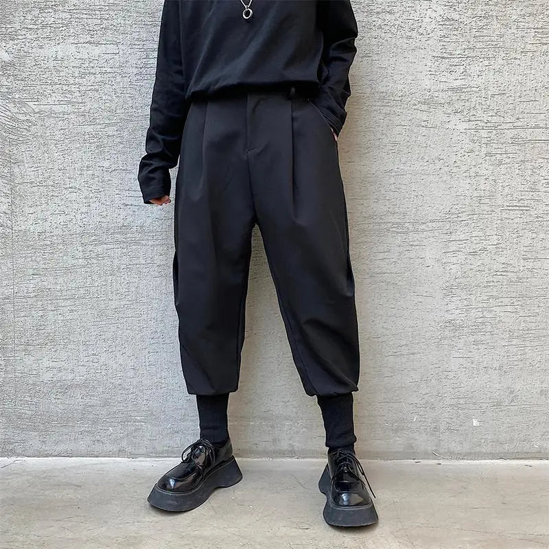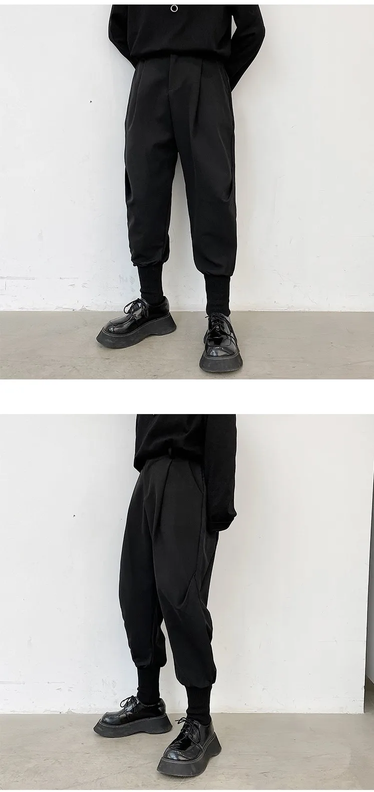 Fashion Men Harem Pants Black Tapered Elastic Waist Trousers Male Cuffed Ankle Hip Hop Oversized Clothes