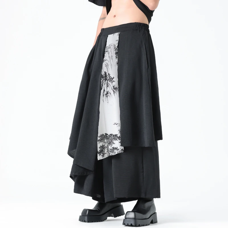 Men Casual Black Pants Men Irregular Style Trendy Japanese Pants Male Samurai Skirt Summer Bottoms Man Streetwear Trousers