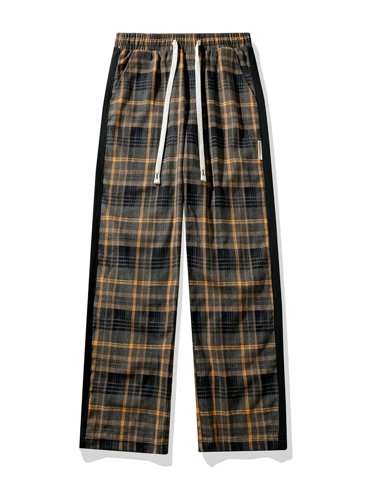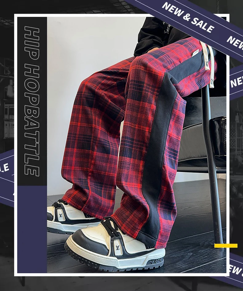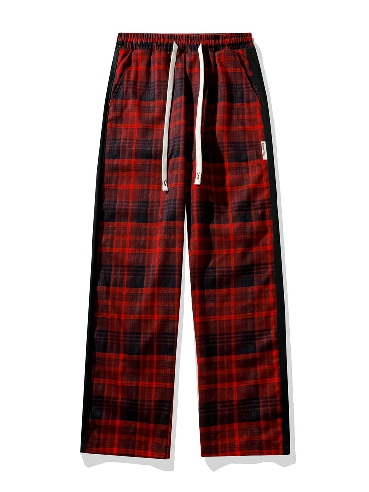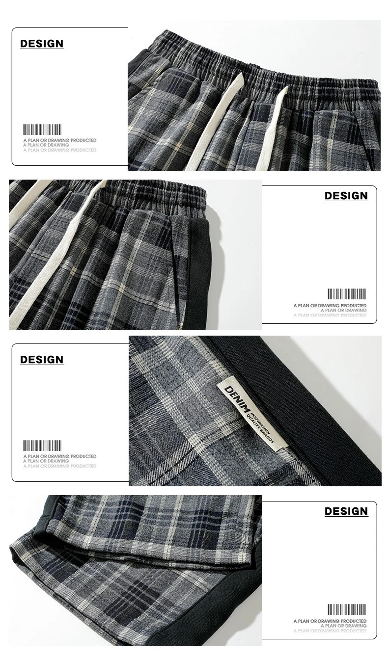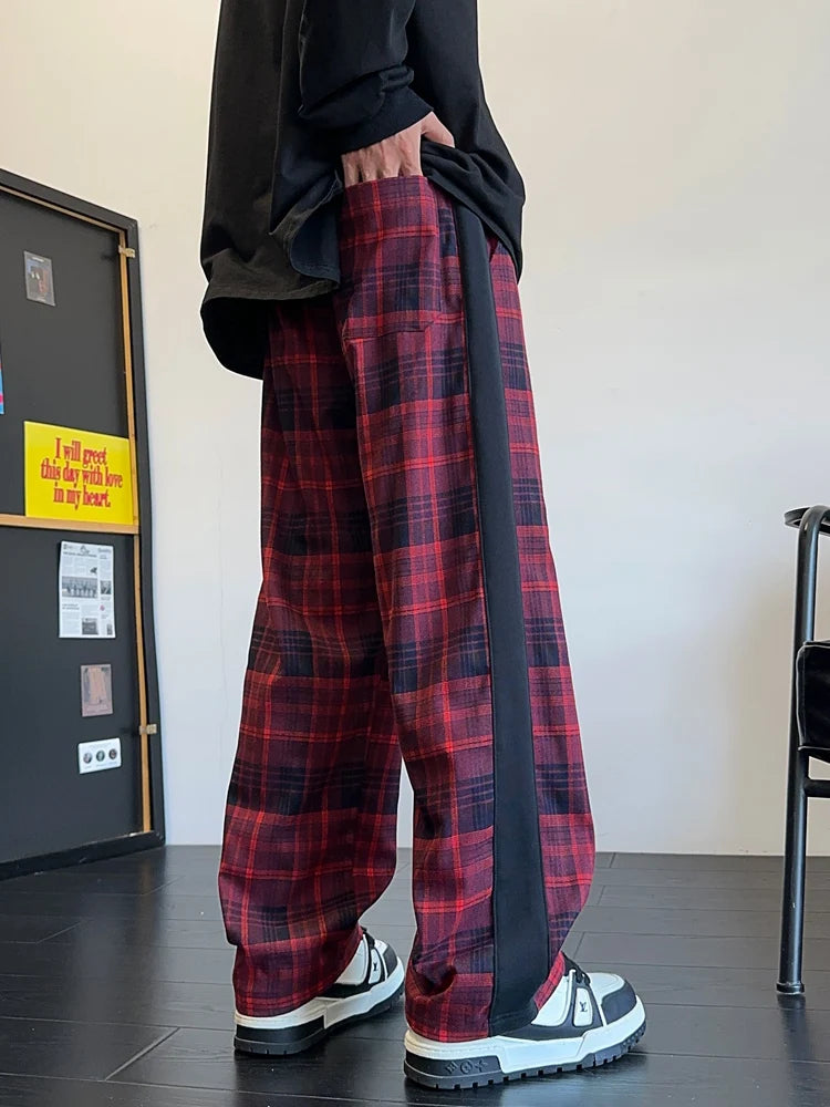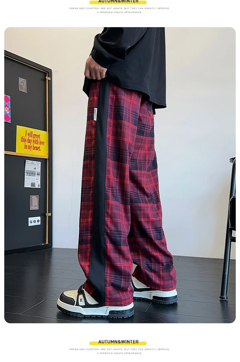 Men's Fashion Plaid Casual Pants Baggy Straight High Street Trousers Elastic Waist Drawstring Classic Male Clothing Trendy Brand