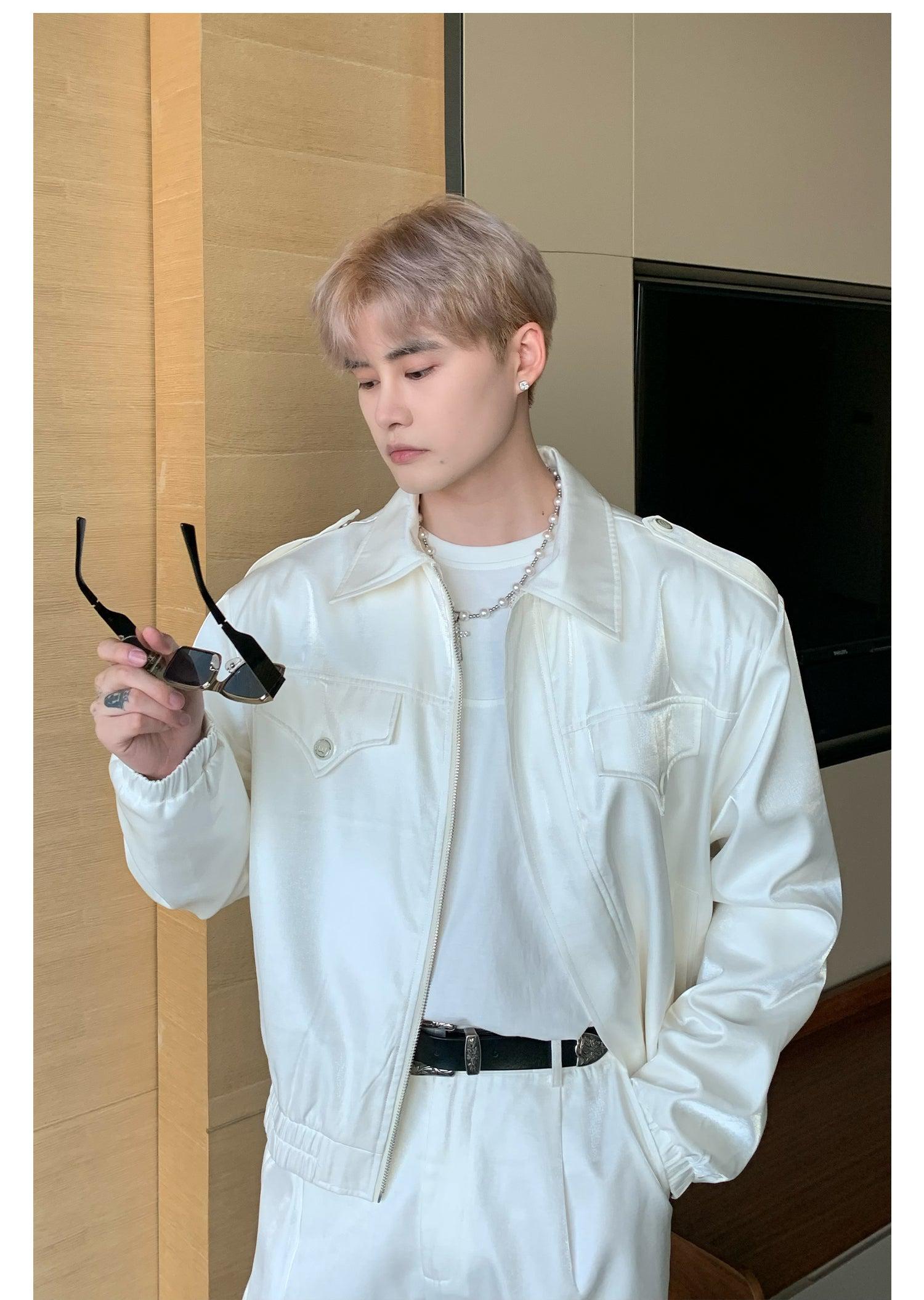 260G Men's Autumn Heavyweight Premium Waffle Basic T-shirt Long Sleeve Simple Solid Color Delicate White Tees Casual Daily Tops