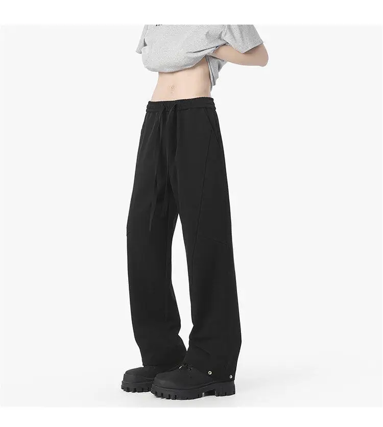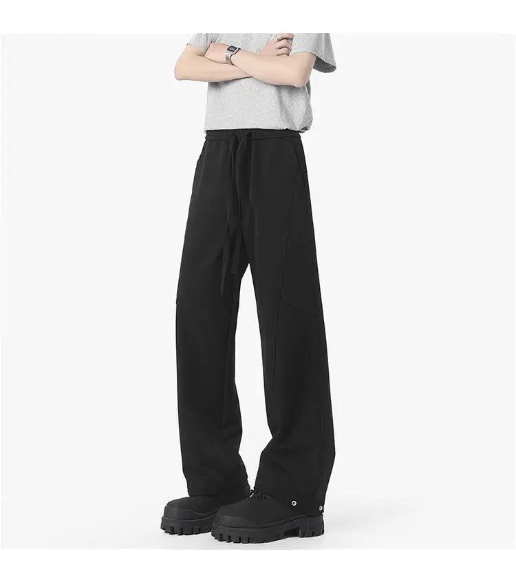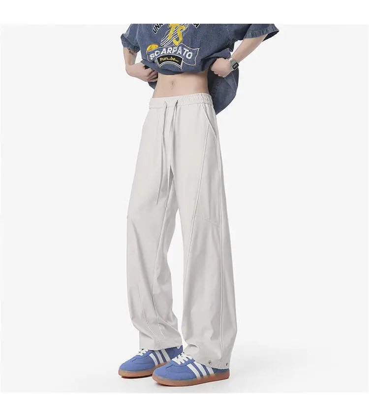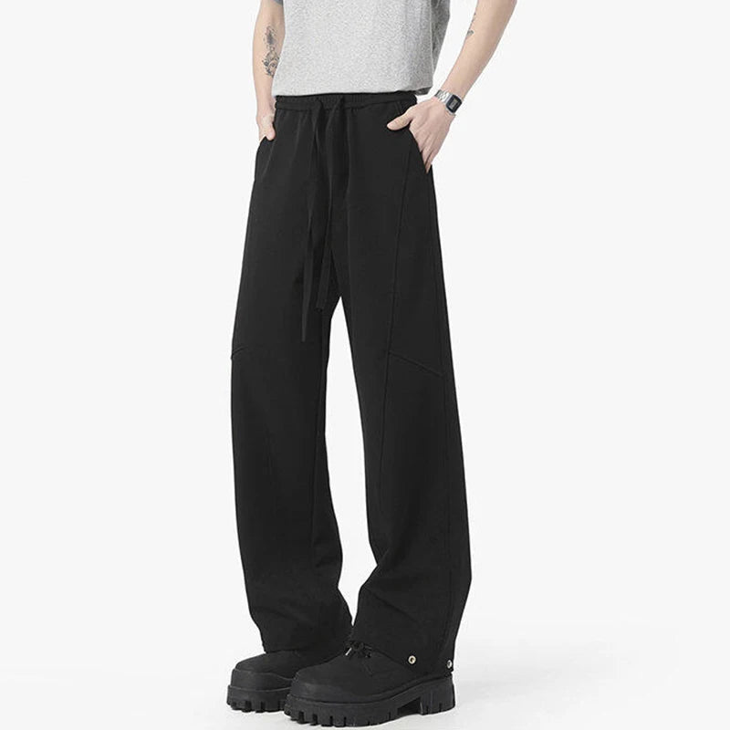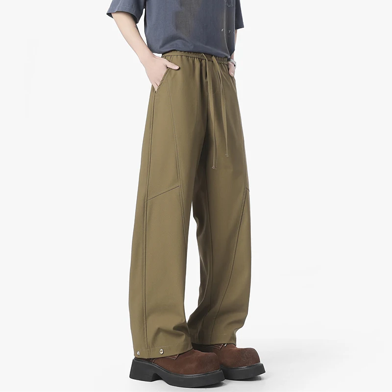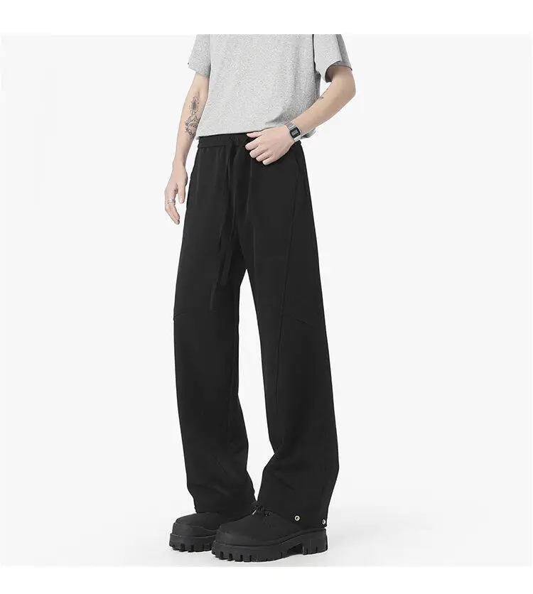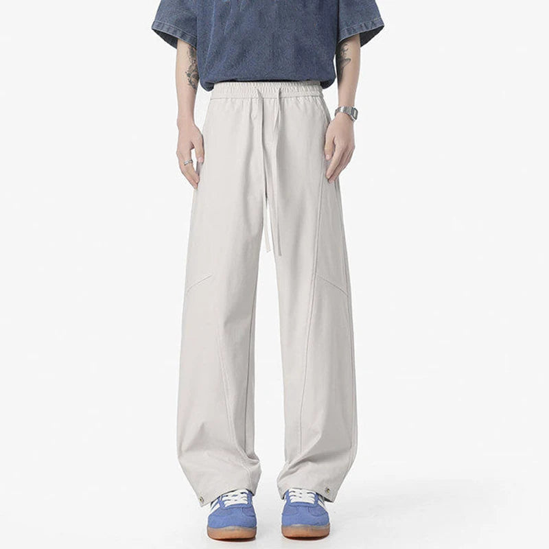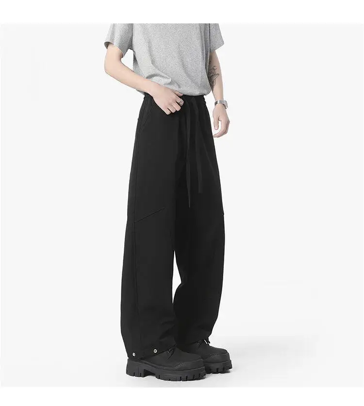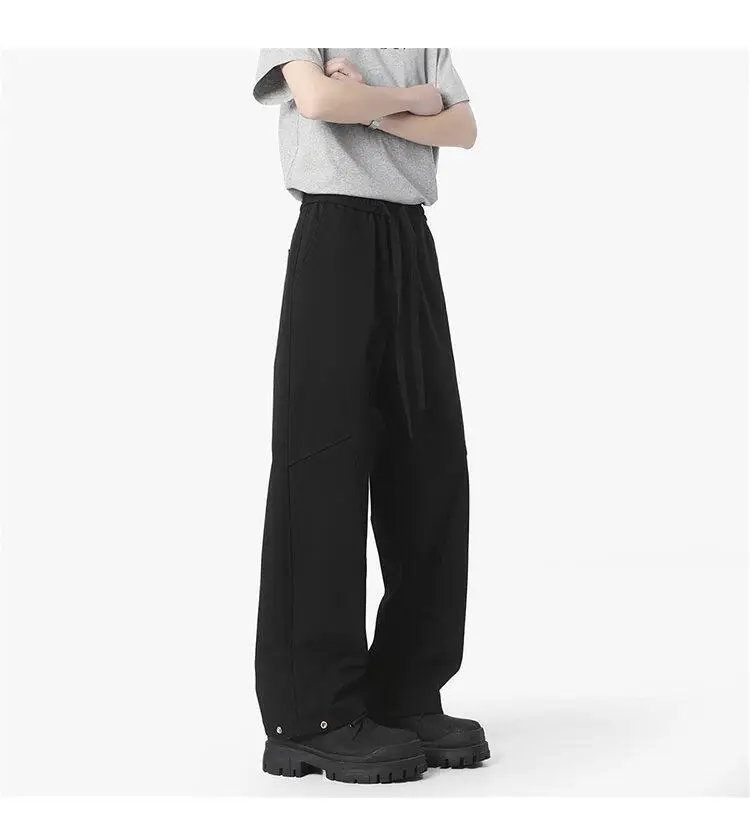 Simple Men's Casual Pants Solid Color Elastic Waist Straight Trousers Ice Silk Drawstring Quick Drying Male Bottom
