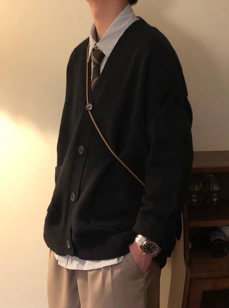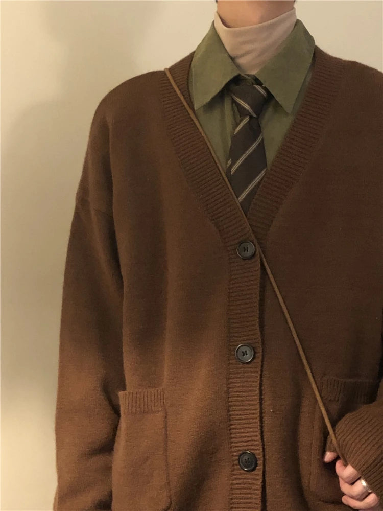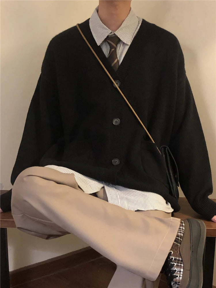 Cardigans Men Retro Simple Streetwear Autumn Winter Warm V-neck Solid Pocket Popular American Style Male Knitting Casual Daily