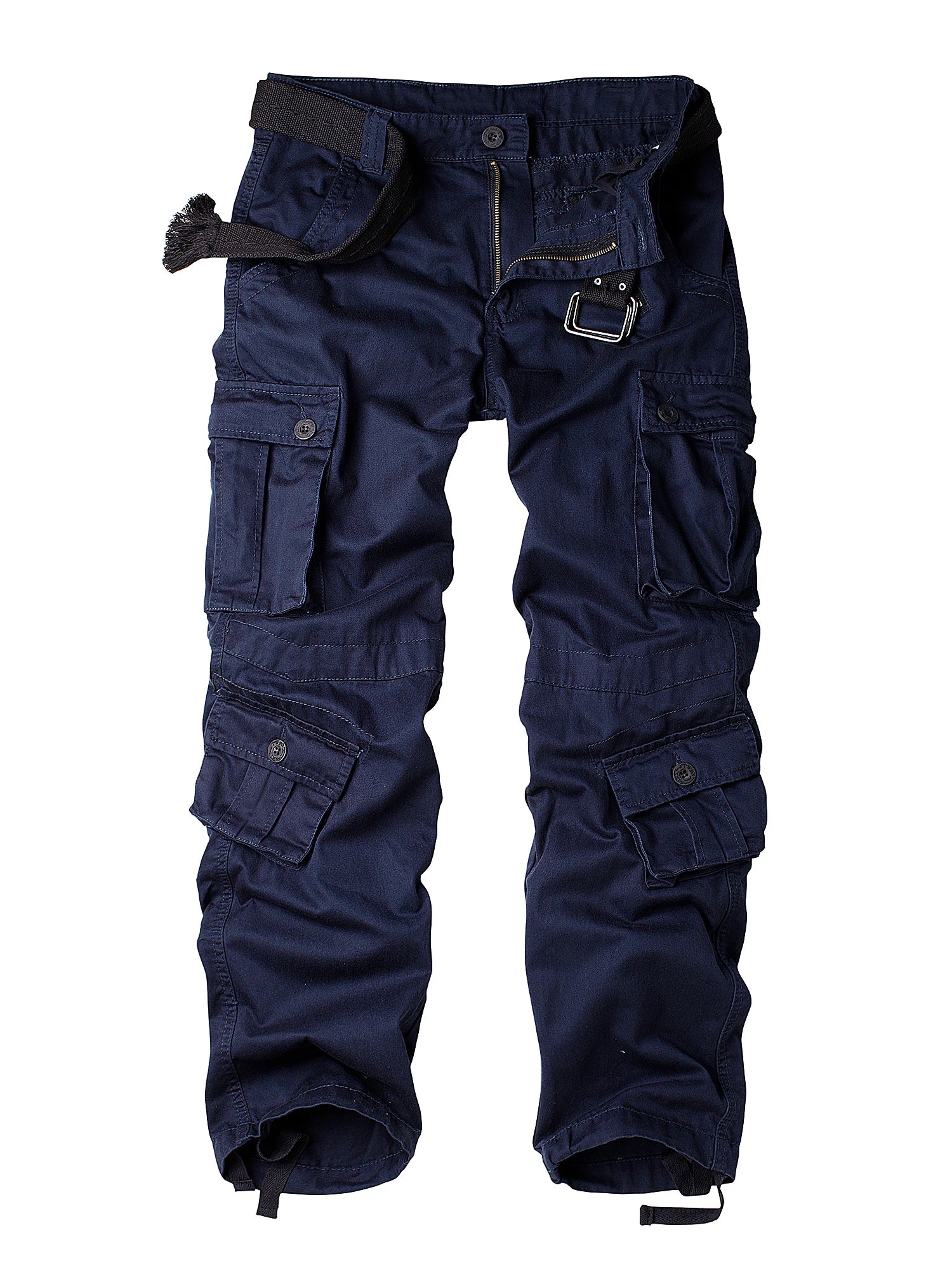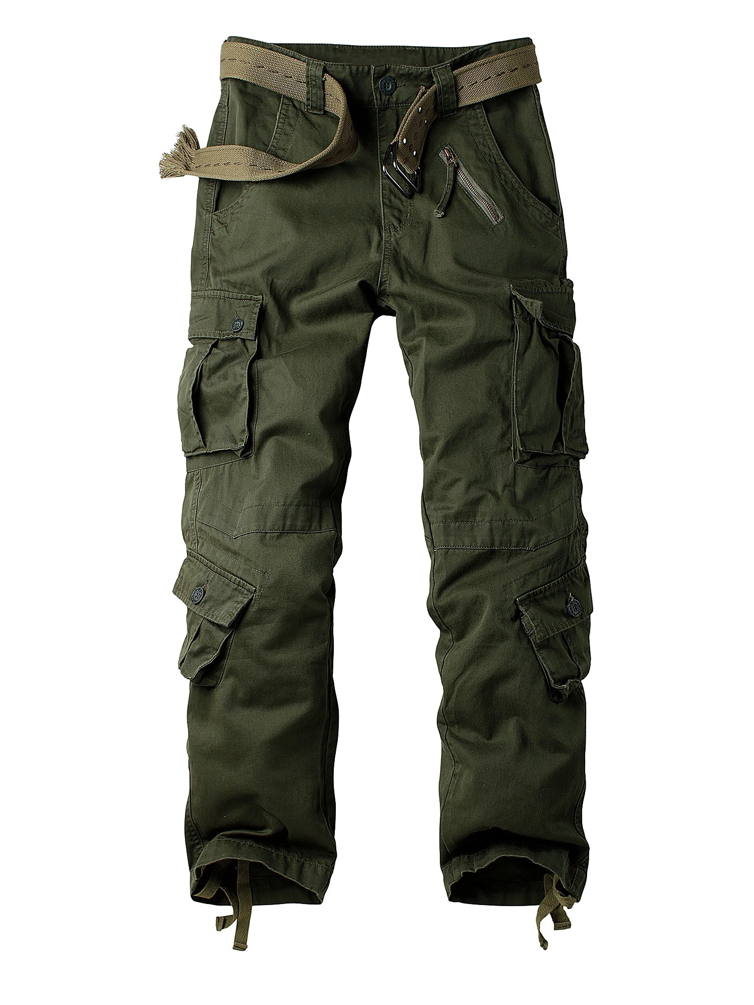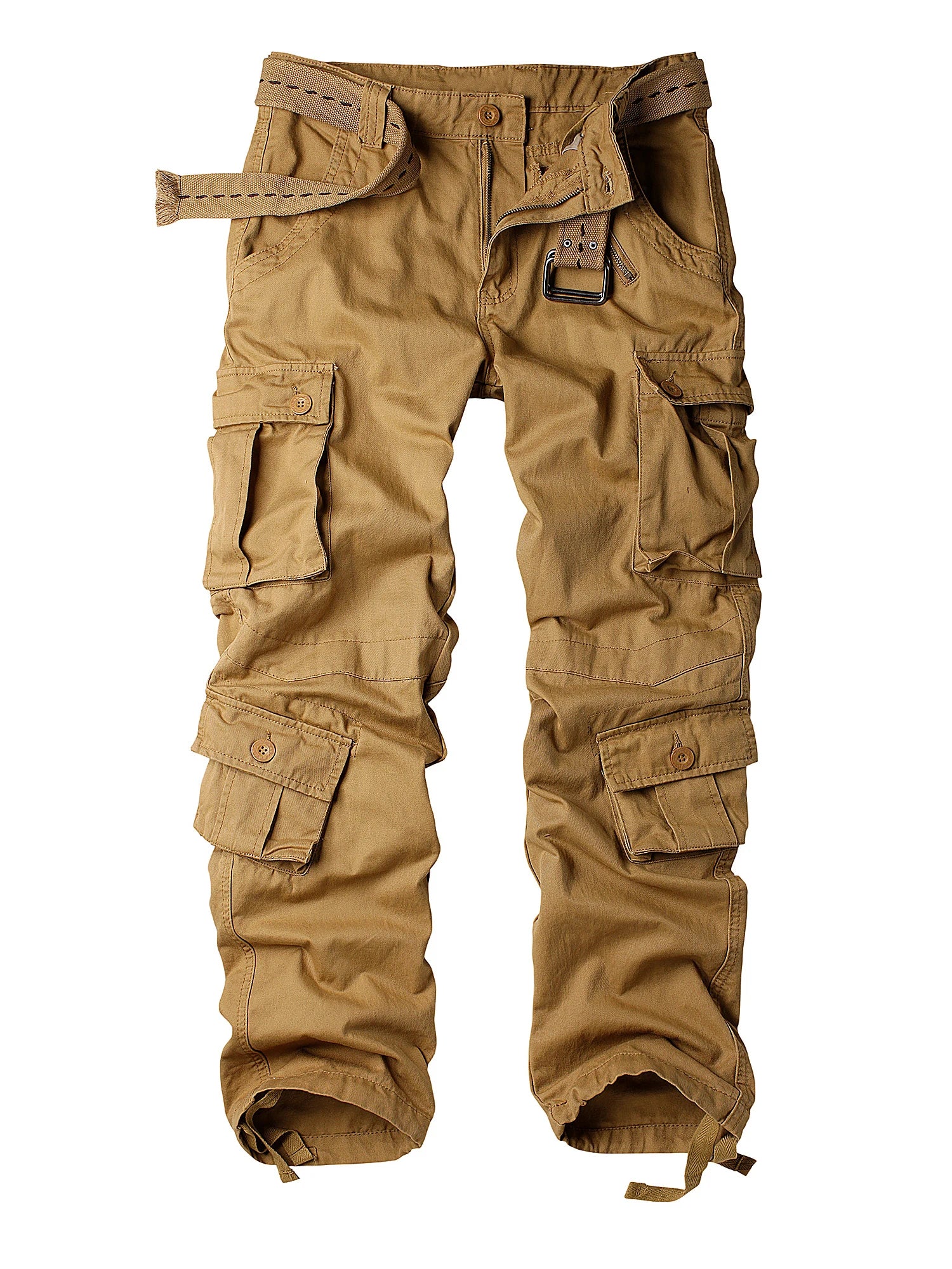 Men's Casual Cargo Pants Military Army Camo Pants Combat Work Pants with 8 Pockets(No Belt)