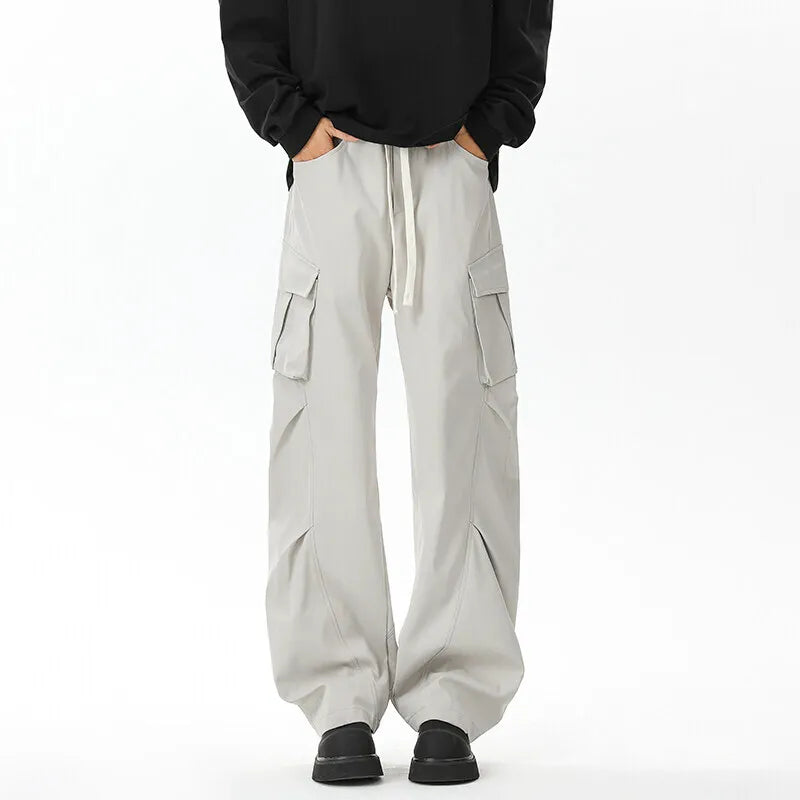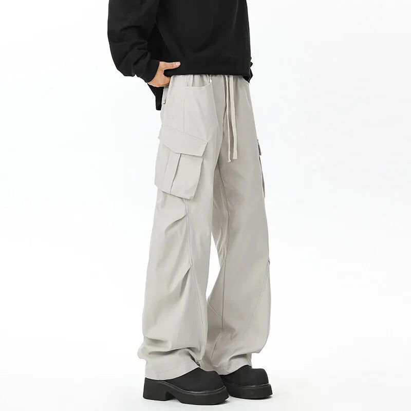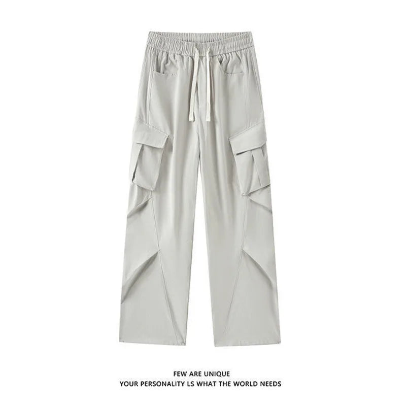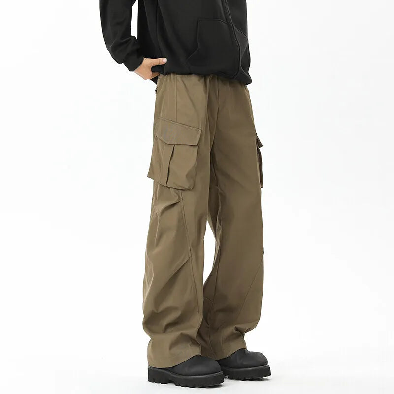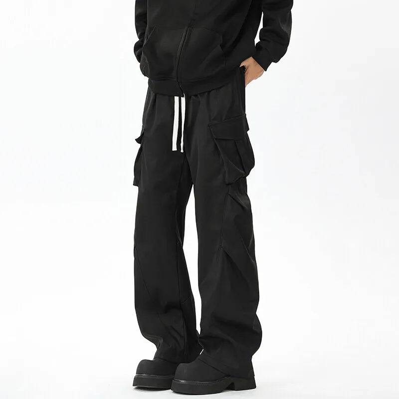 Black Casual Pants Men Retro Pocket Cargo Pants Men Japanese Streetwear Hip-hop Loose Straight Pants Mens Vintage Trousers