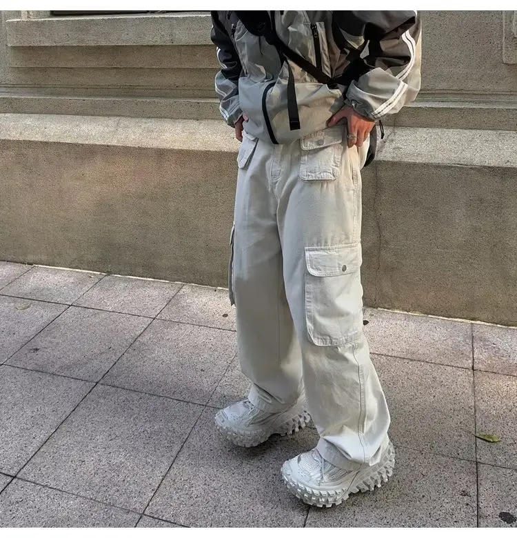 Cargo Pants Men Multi Pockets Chic Solid All-match Fashion Comfortable Functional Techwear Outer European Baggy Mopping Trousers
