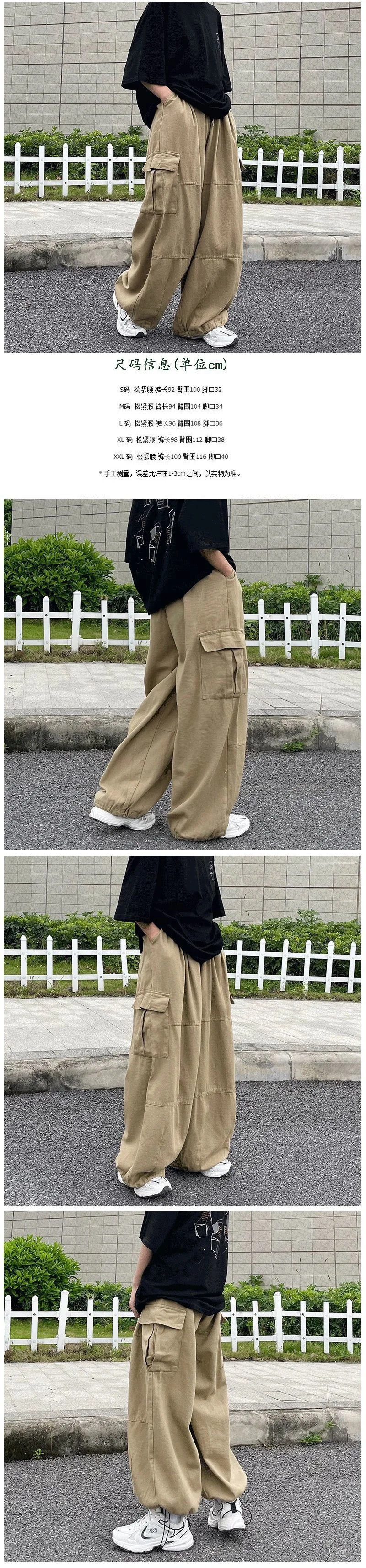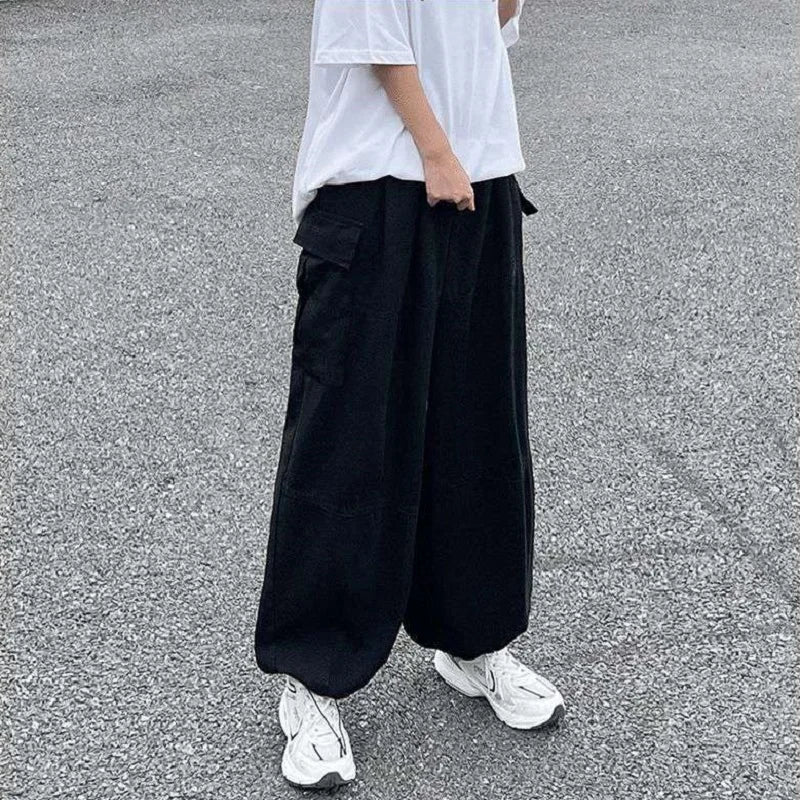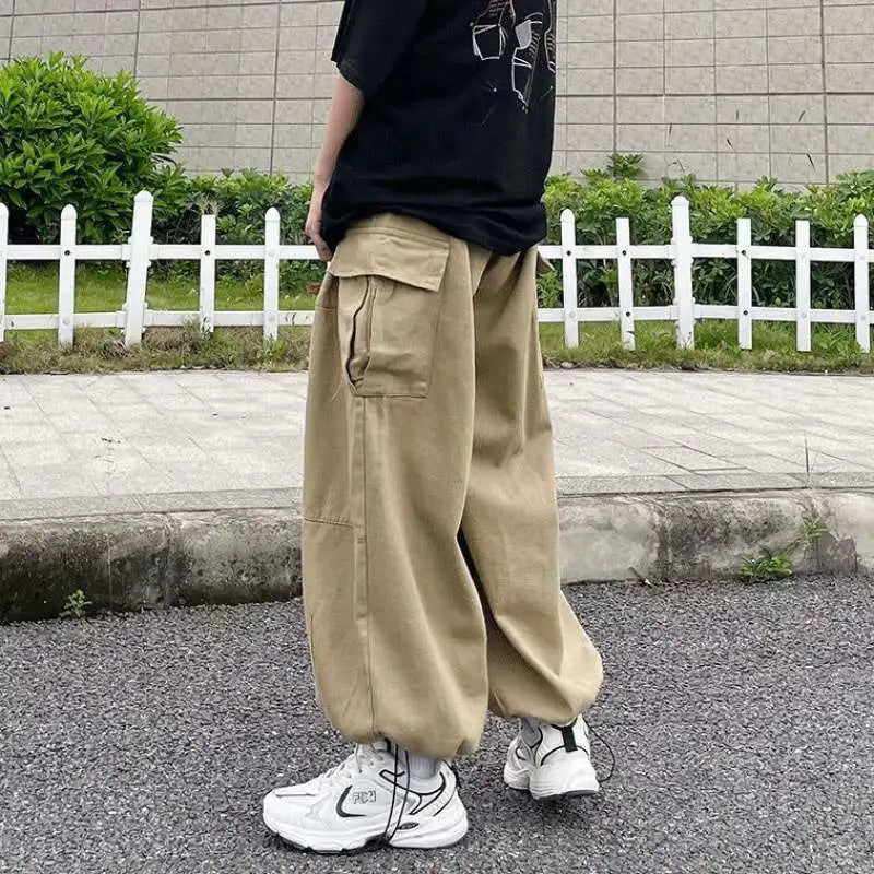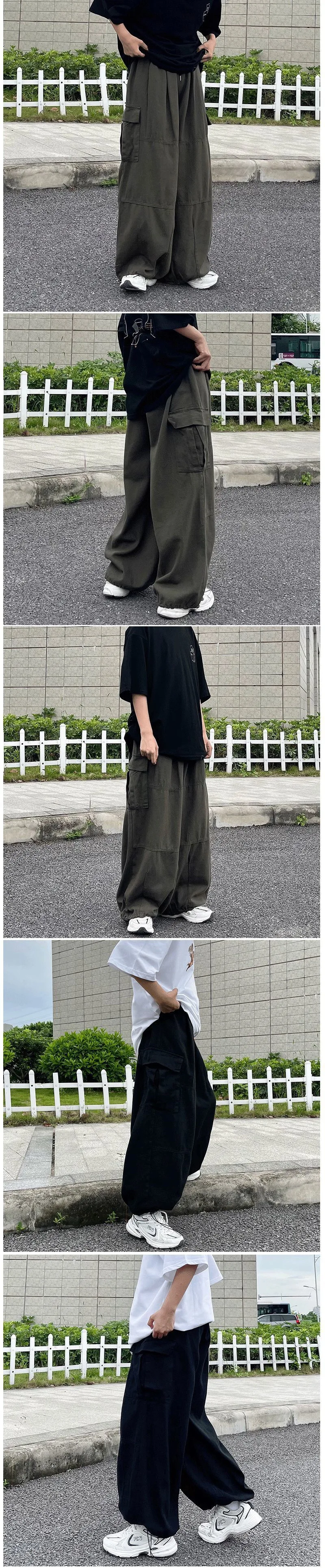 Fashion Casual Street Cargo Pants Men Japanese High Street Harajuku Straight Tube Loose Tide Hong Kong Style Retro Wide-Leg Pant