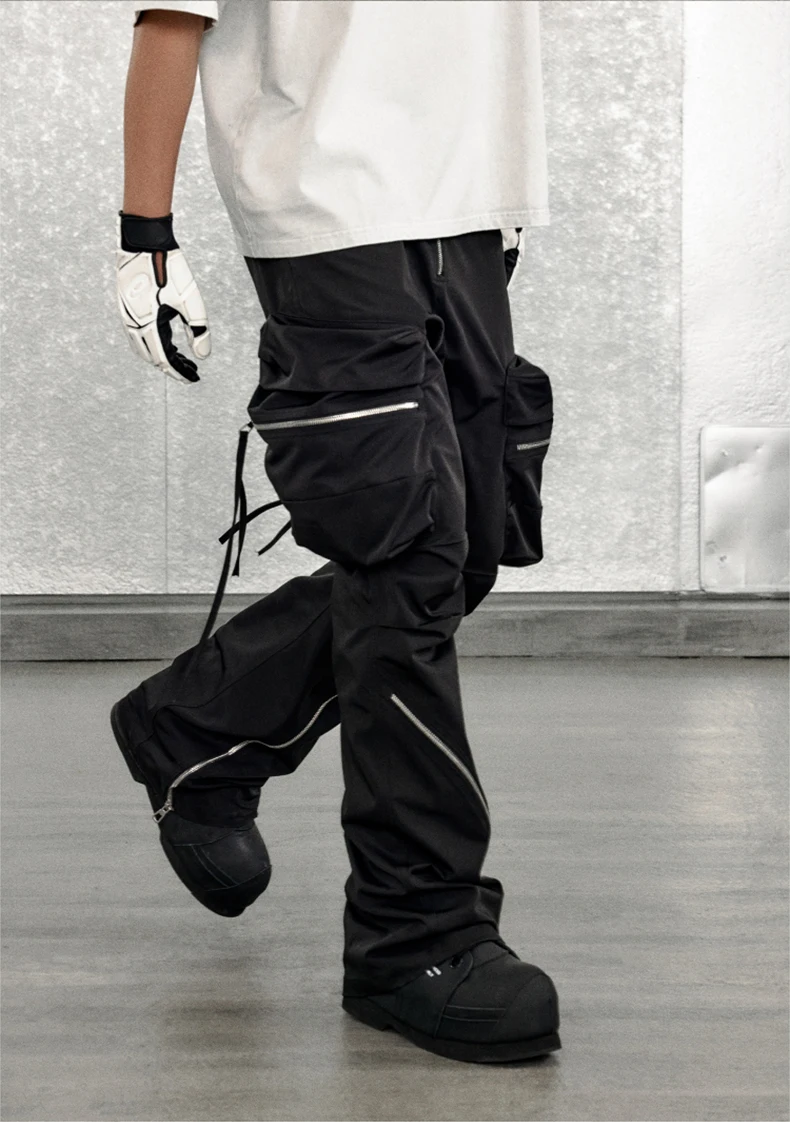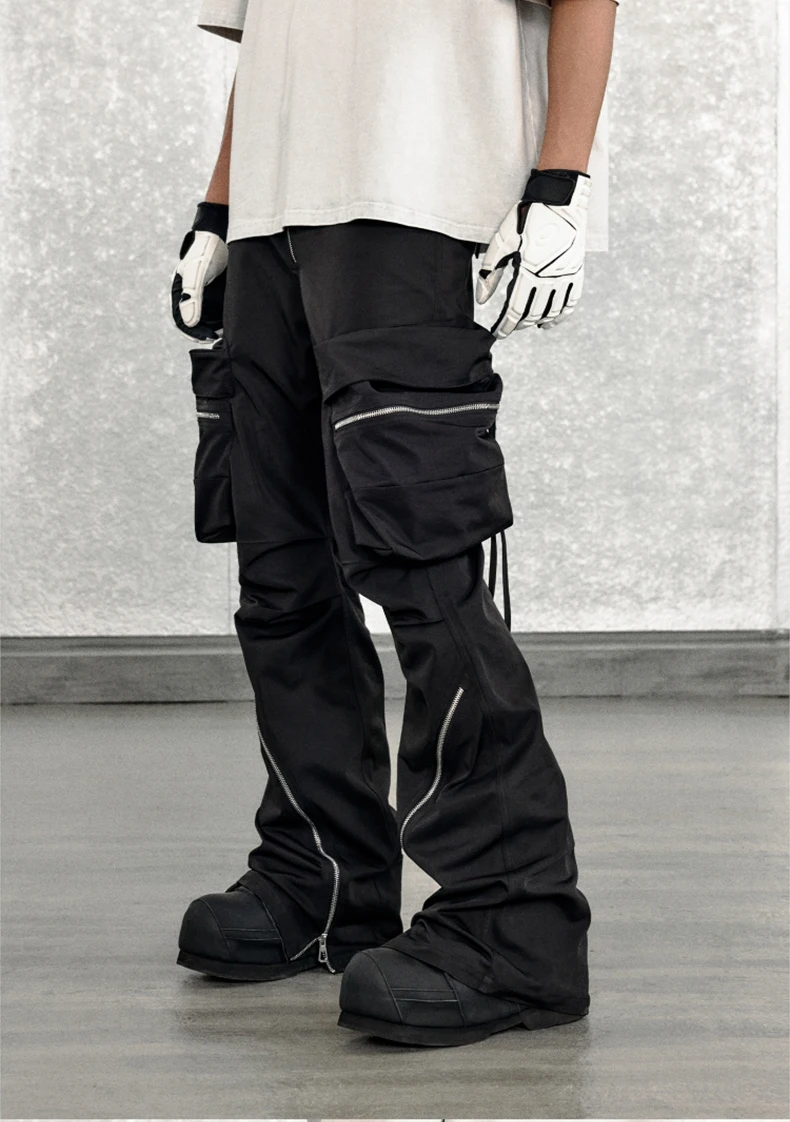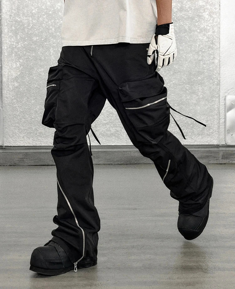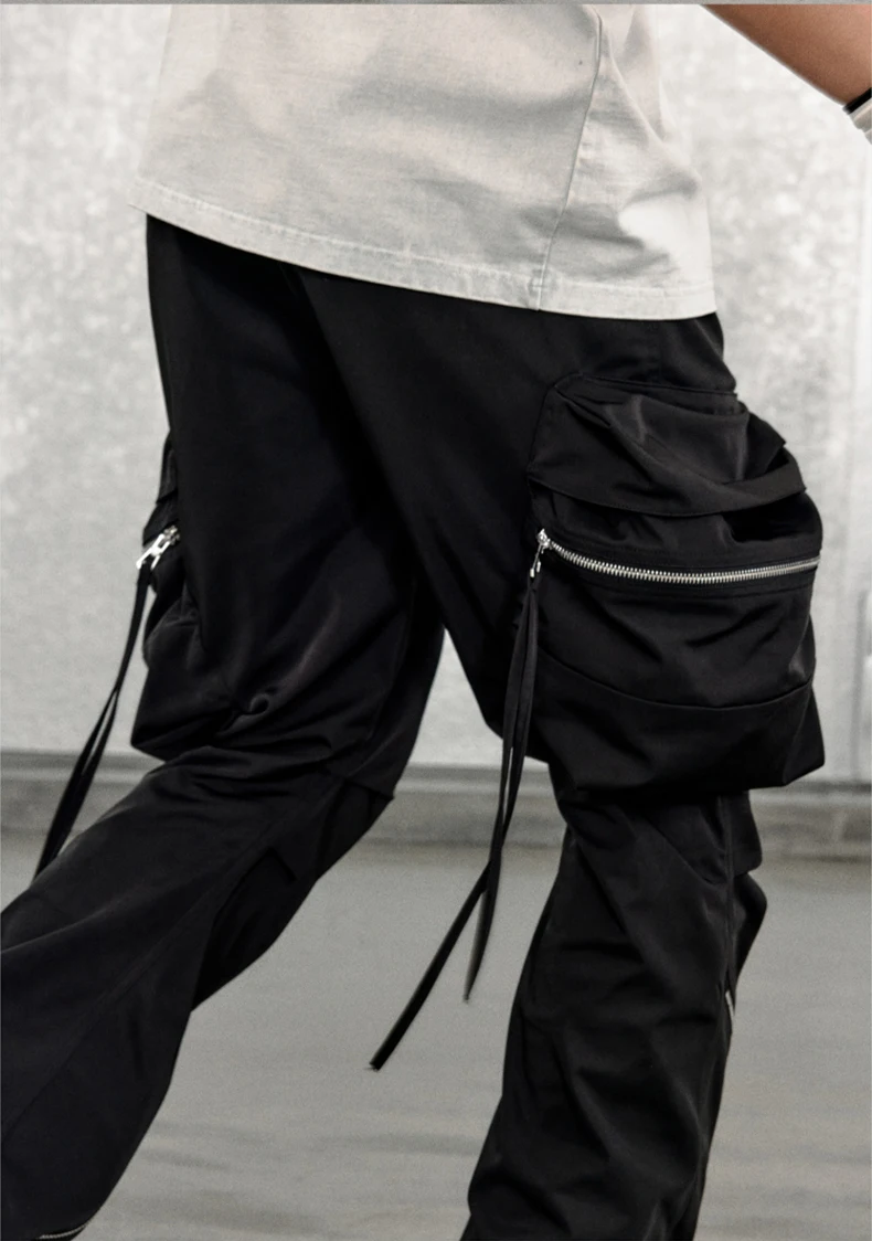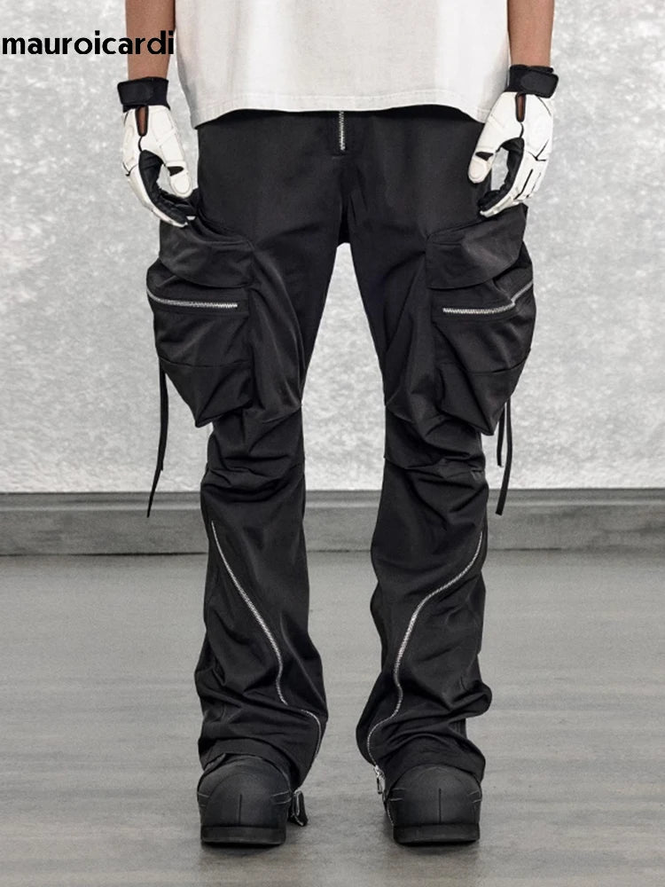 Spring Autumn Cool Black Cargo Pants Men with Big Pockets Long Zipper Luxury Designer Clothing Trousers Fashion
