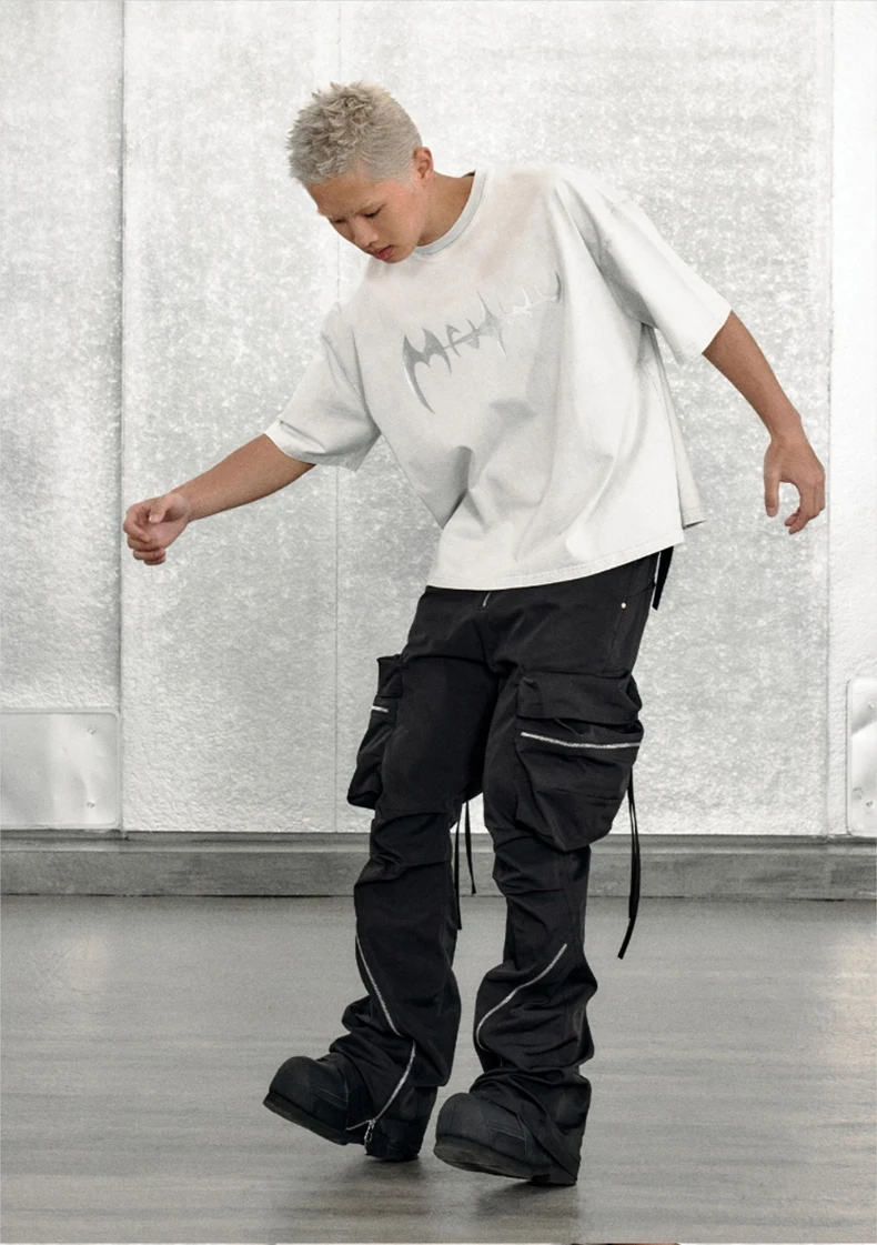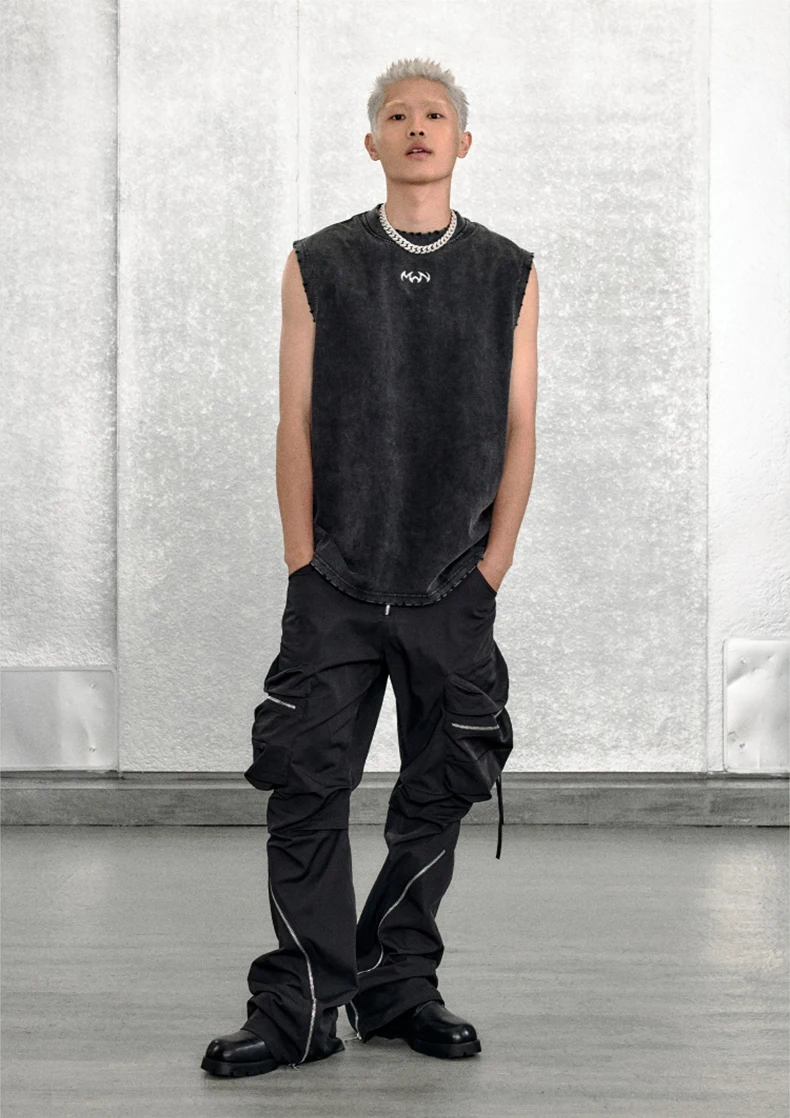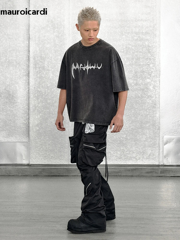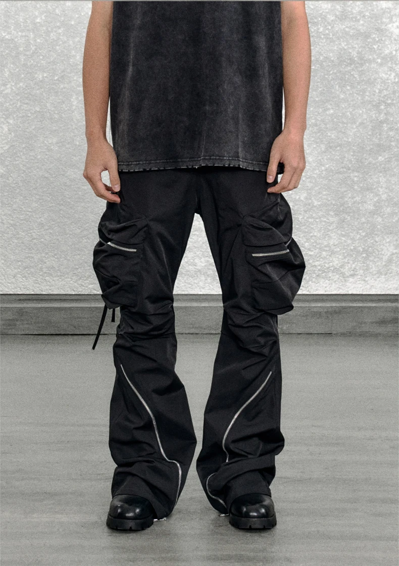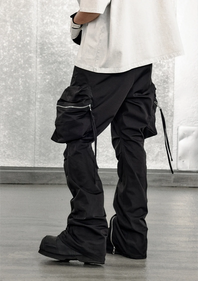 Spring Autumn Cool Black Cargo Pants Men with Big Pockets Long Zipper Luxury Designer Clothing Trousers Fashion