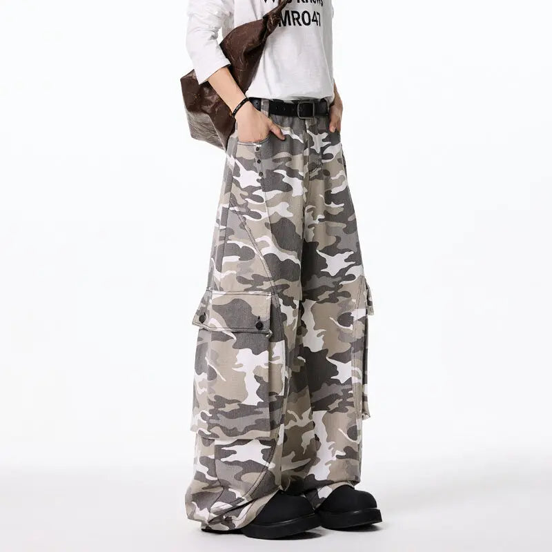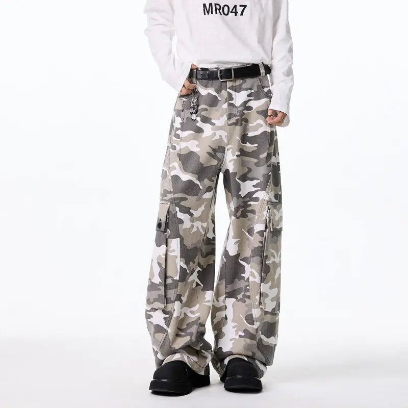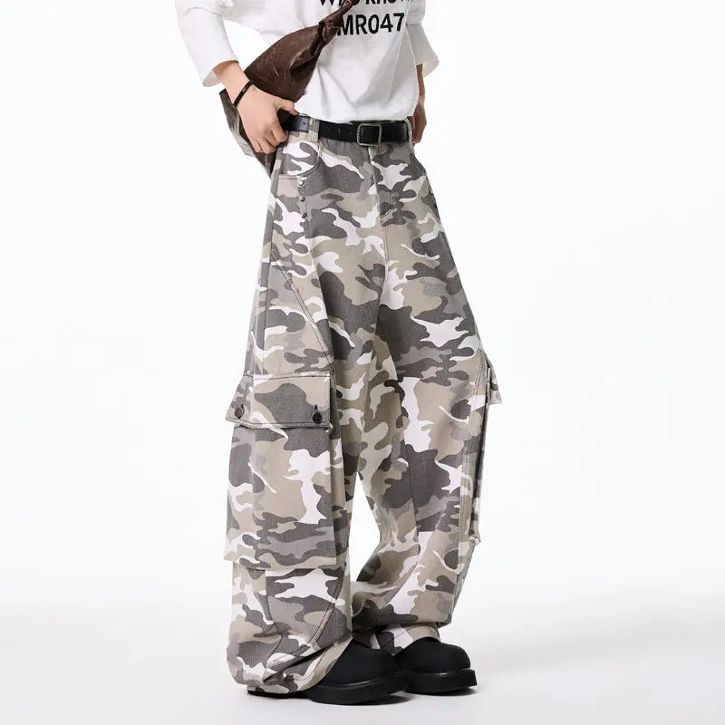 Mens Cargo pants Cotton Camo Workwear Pants Loose Fit Wide Leg Military Tactical Casual Trousers Urban Outdoor Clothing 2025