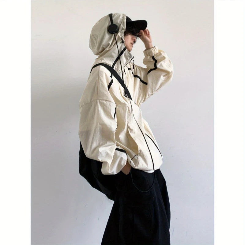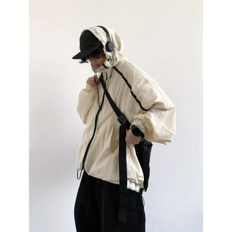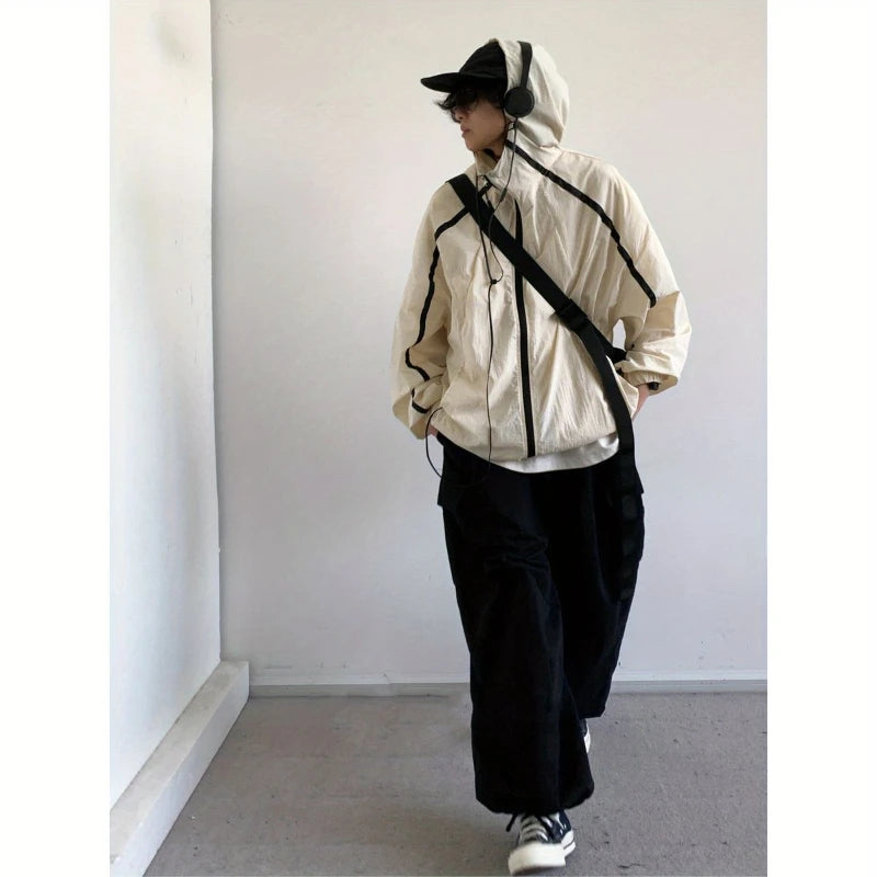 Sports Travel Set Men Lightweight Thin Hooded Charge Jacket+Quick Drying Pocket Drawstring Cargo Pants Suit Summer Outdoor 2-pcs