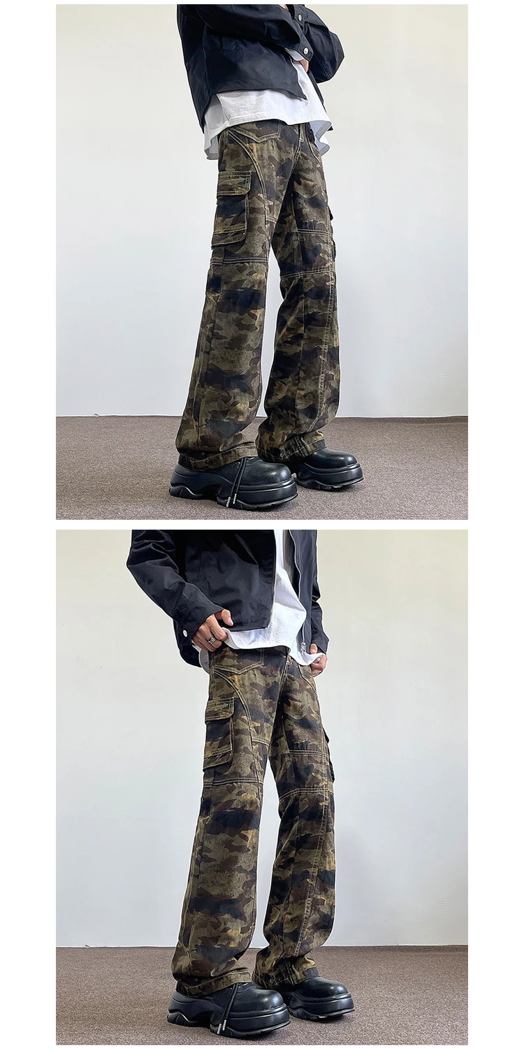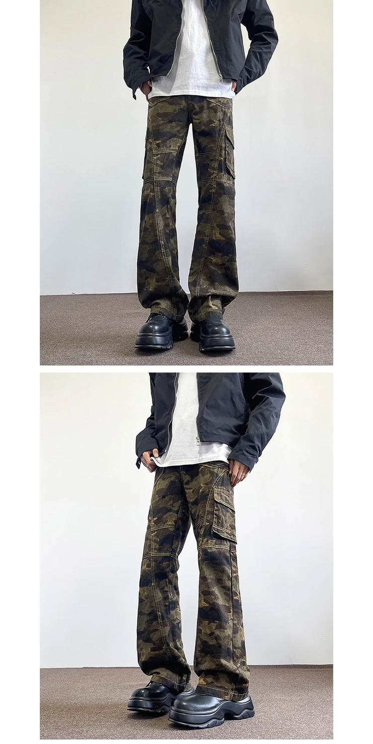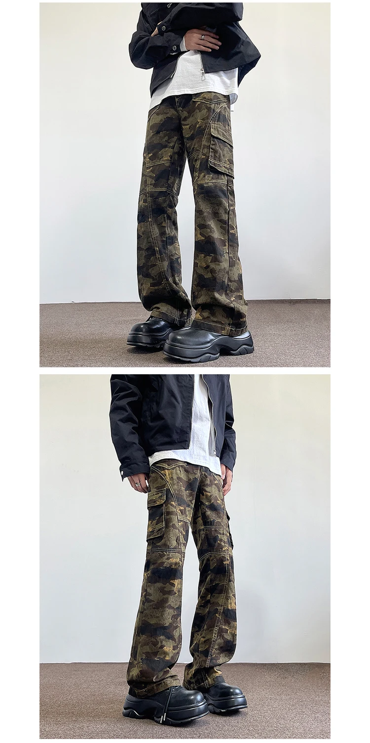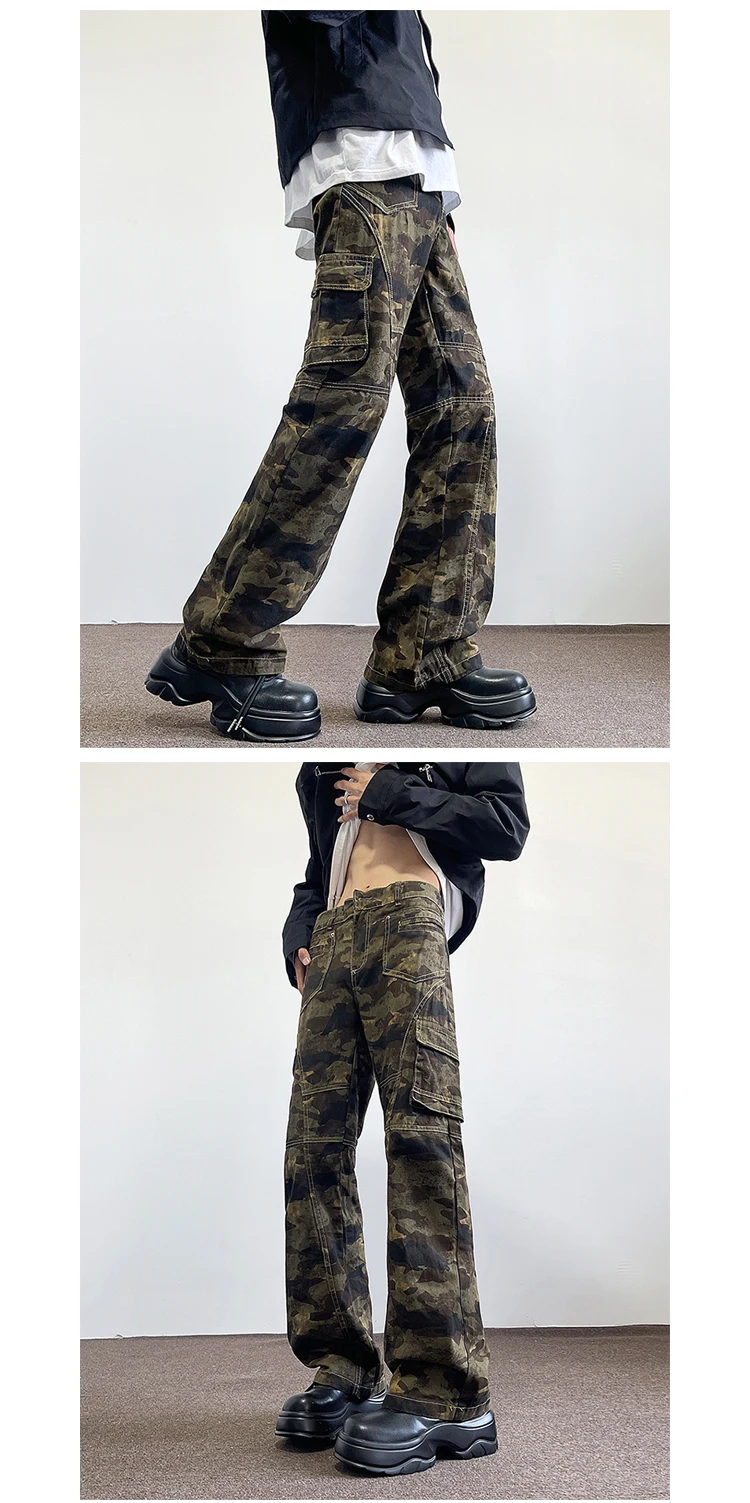 Y2K 2000S Camouflage Multi Pockets Slim Jeans Flare Cargo Pants For Men Clothes Streetwear Hip Hop Lady Old Long Trousers
