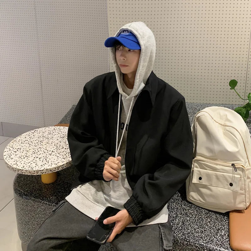Autumn Short Jacket Men Fashion Green Black Casual Jacket Men Streetwear Korean Loose Bomber Jackets Mens Outwear M-XL