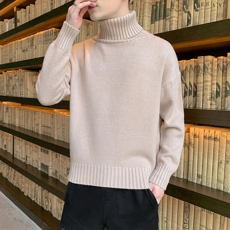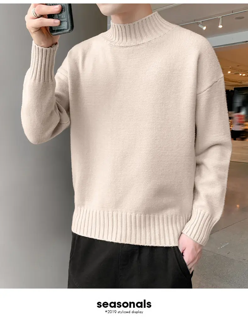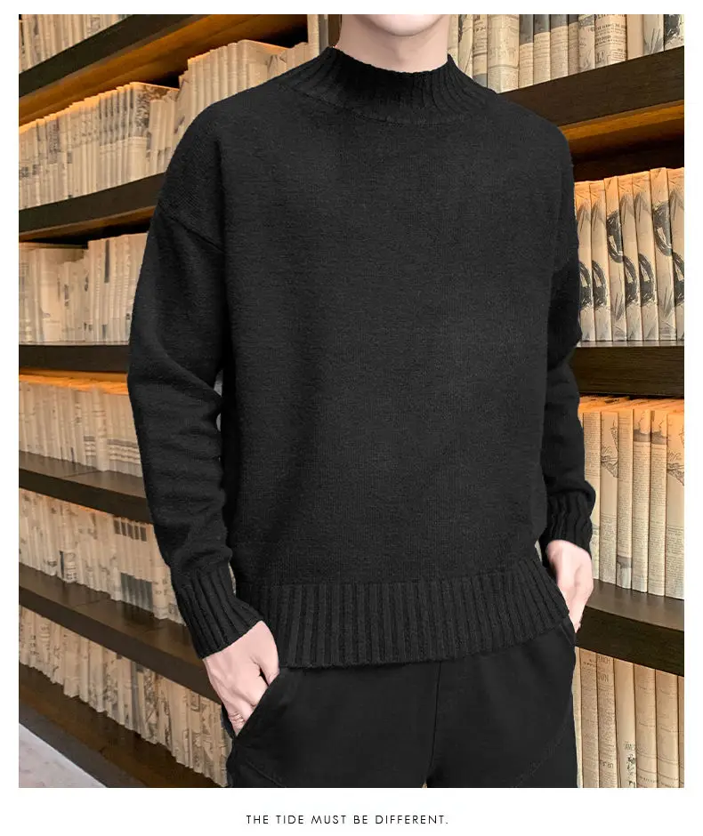 Autumn Winter Fashion Long Sleeve Half High Collar Solid Pullovers Men's Clothing Warm Simplicity Casual All-match Knitting Tops