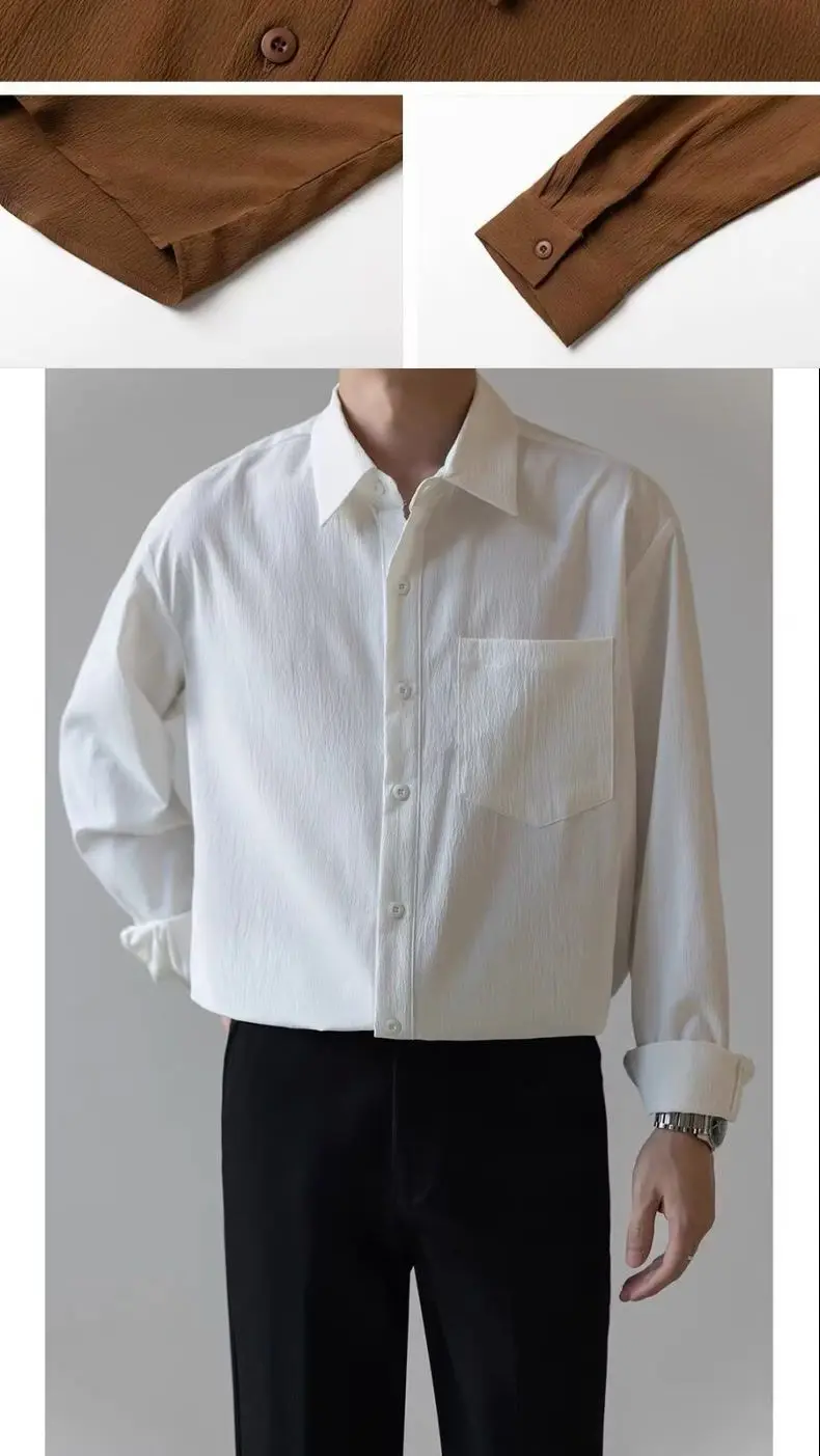 Elegant Fashion Harajuku Slim Fit Male Clothes Loose Casual All Match Outerwear Lapel Collar Solid Button Long Sleeve Jacket