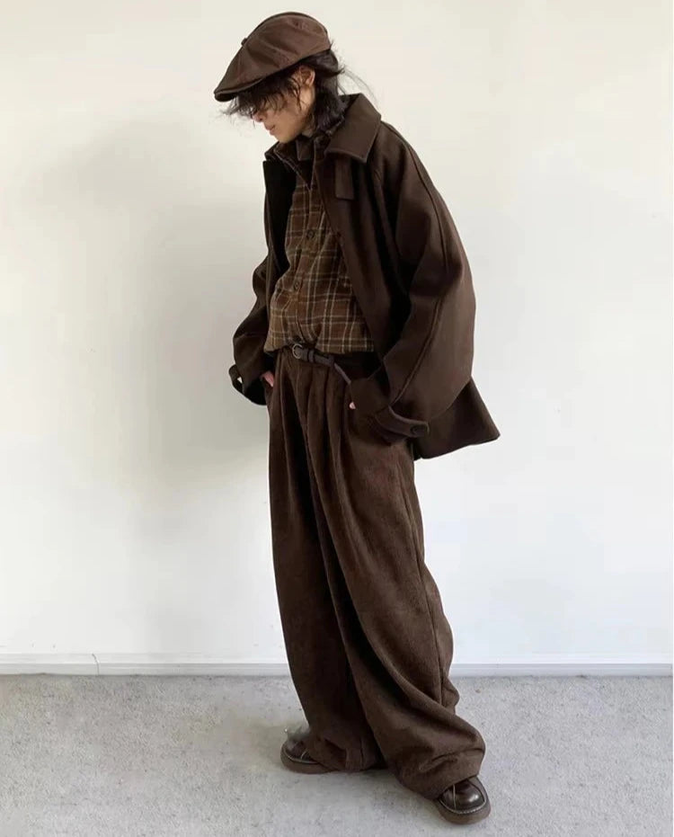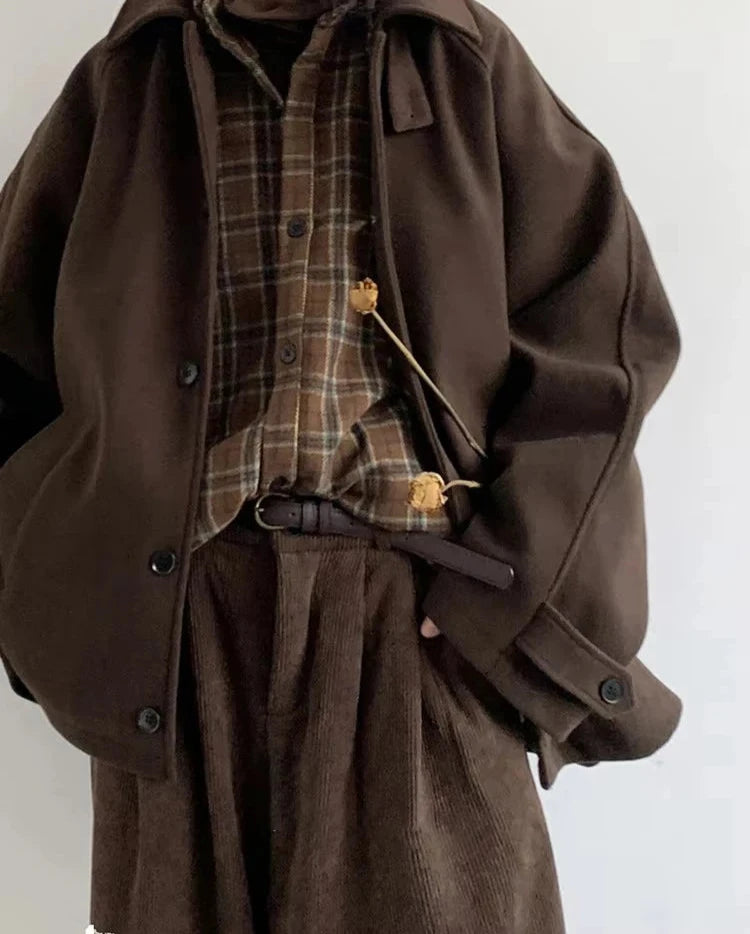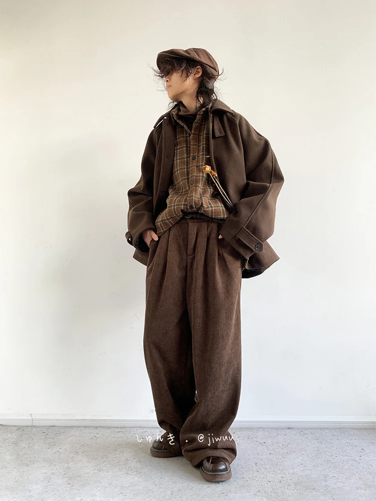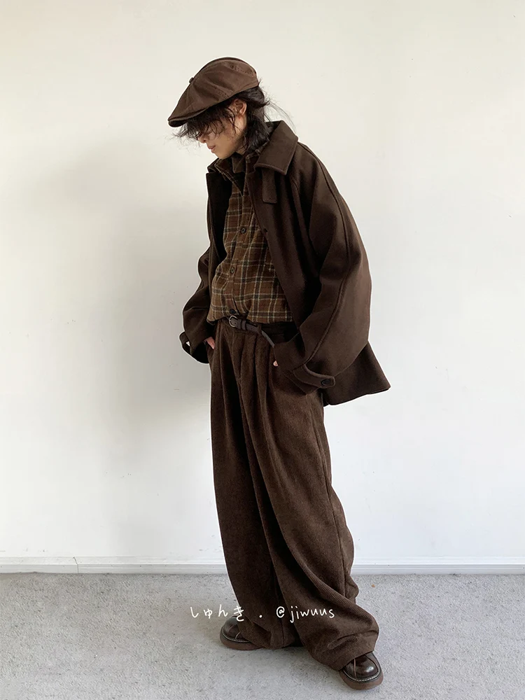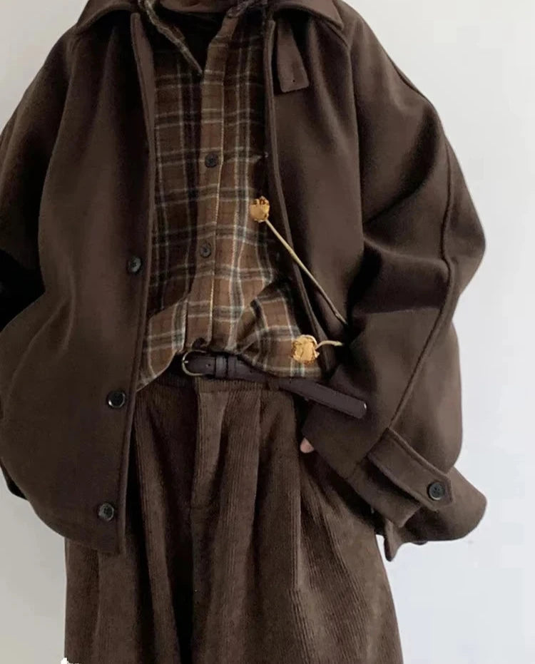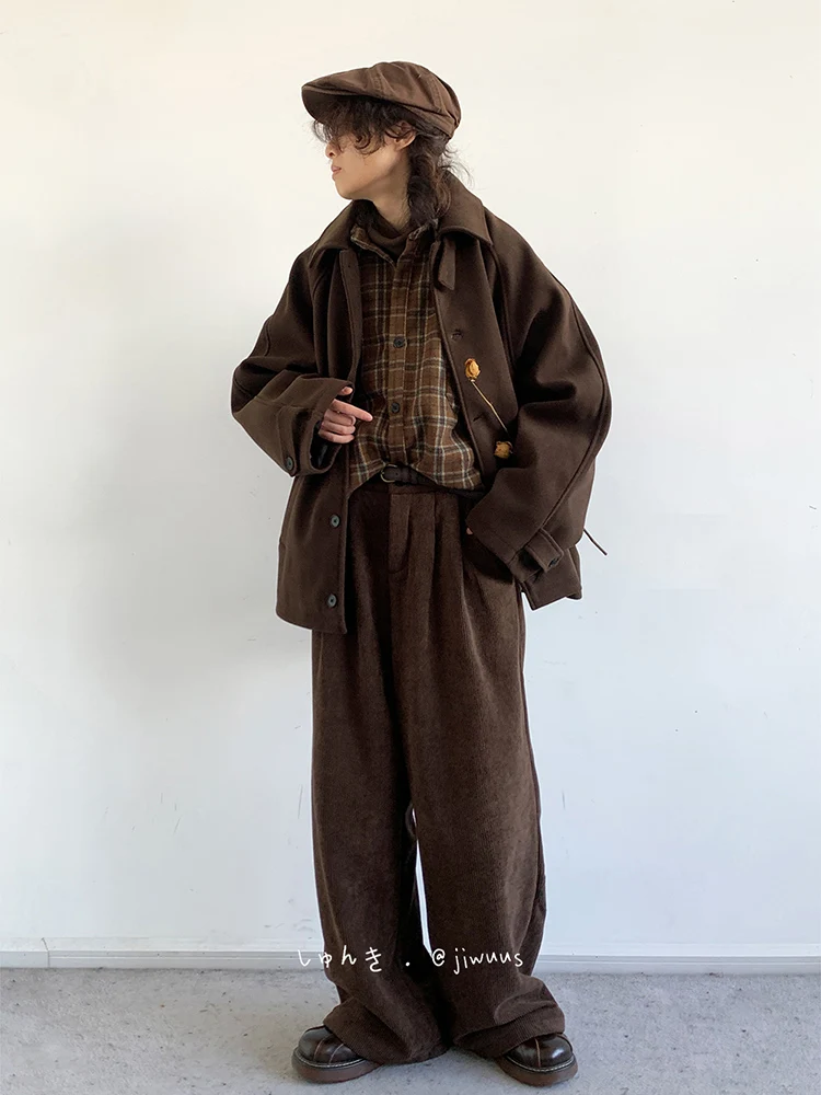 Autumn Winter Oversized Warm Soft Caramel Woolen Jacket Men Raglan Sleeve Loose Casual Unisex Clothing