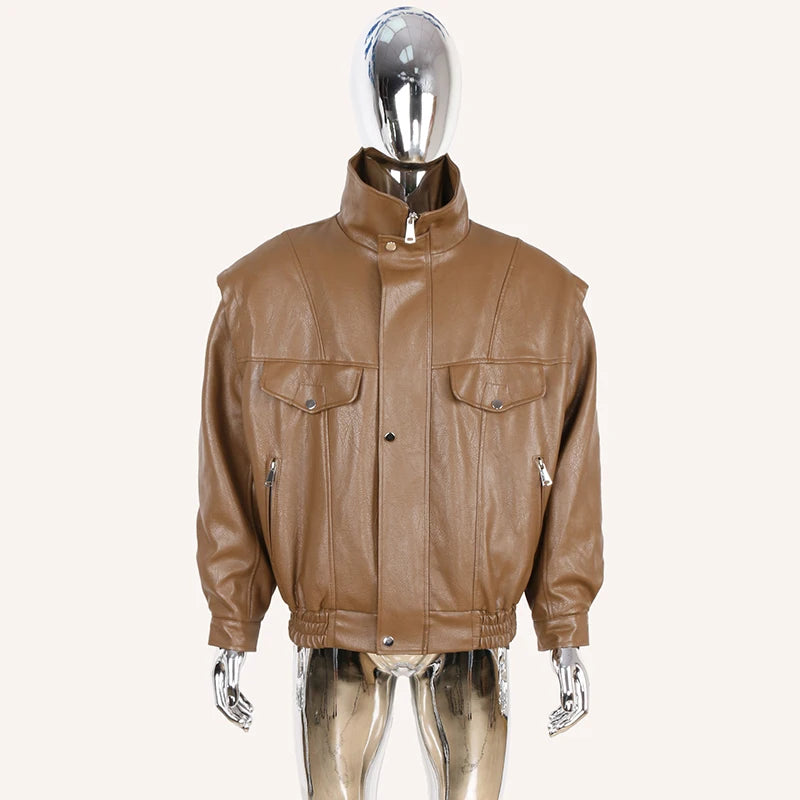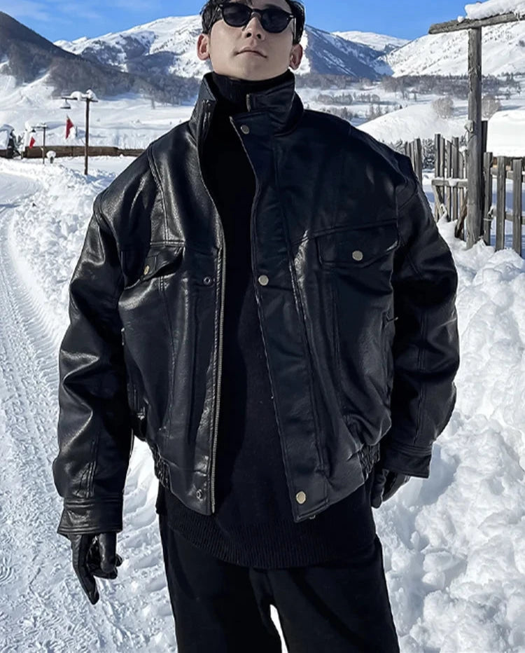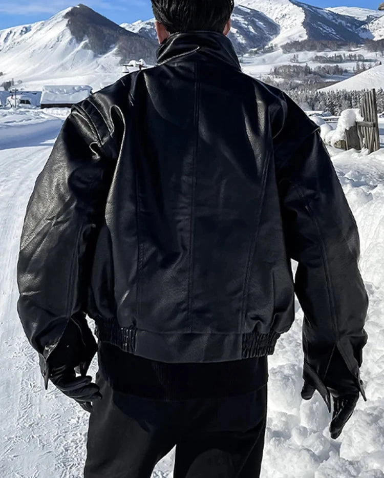 Autumn Winter Waterproof Windproof Oversized Thickened Warm Black Faux Leather Jacket Men Zip Up Casual Cool Fashion
