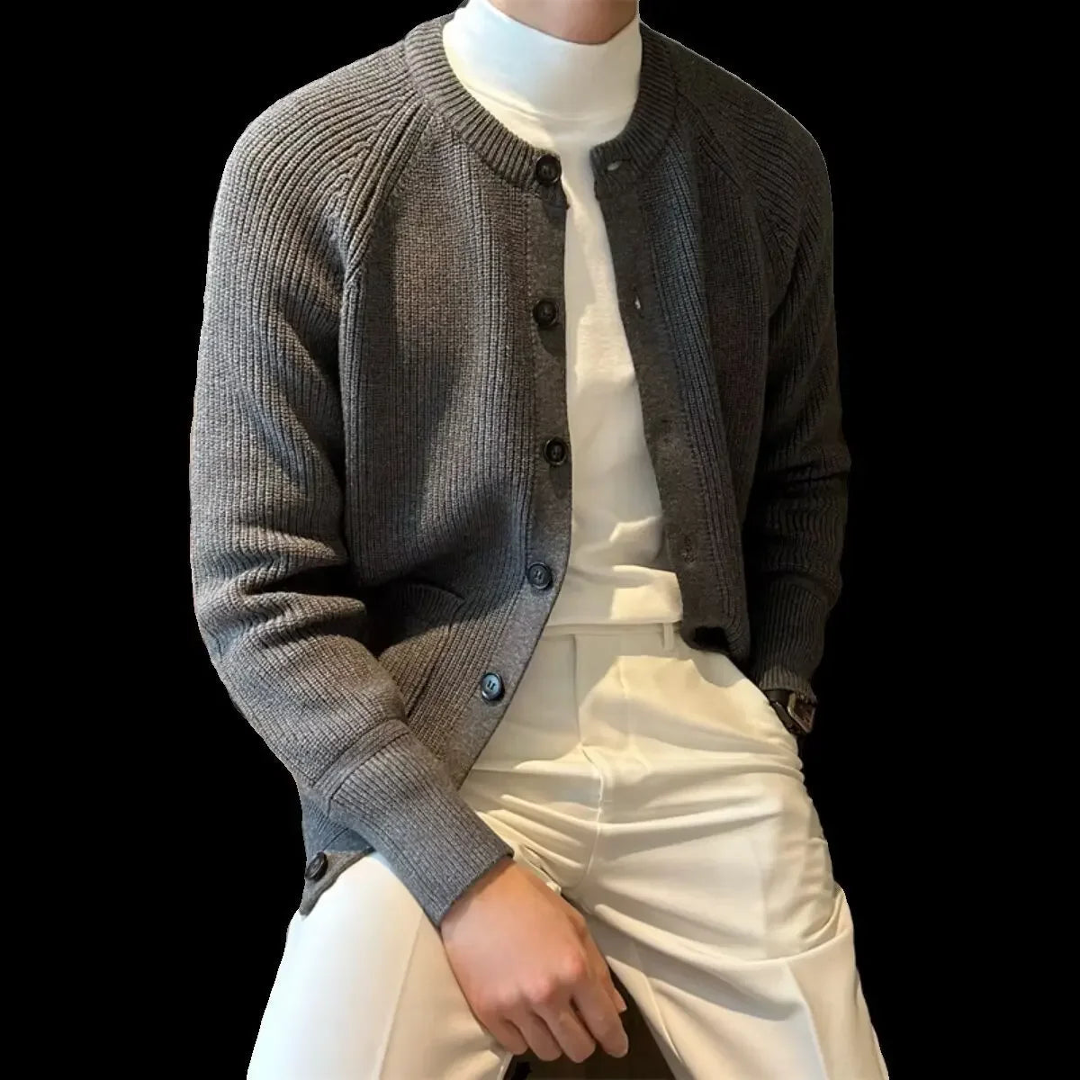 Men's Fashionable Winter Knit Jacket Loose-fit Round Neck Single-breasted Blazer Casual Style Pullovers