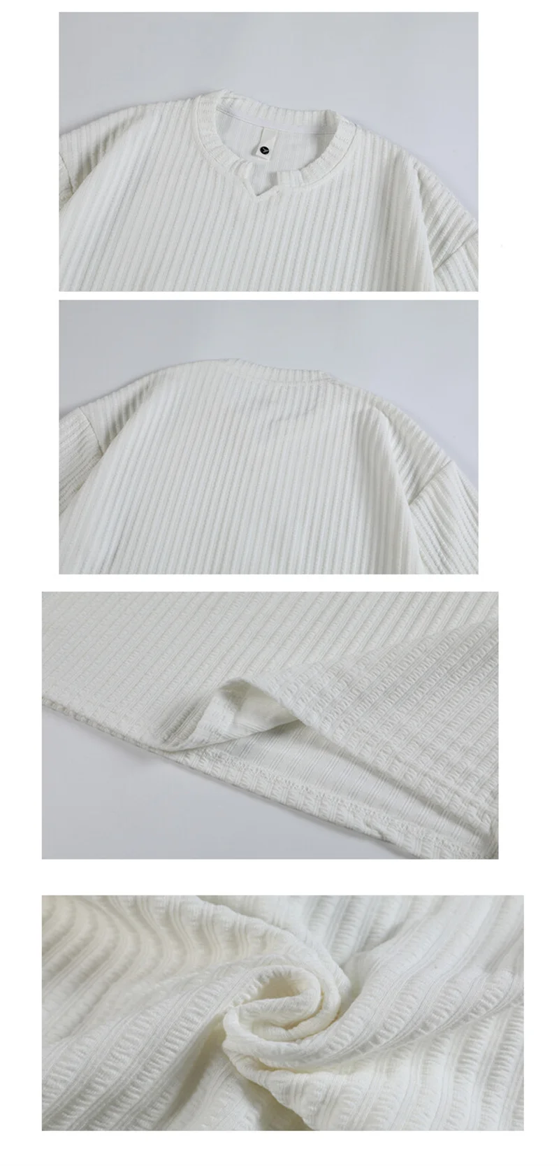 260G Men's Autumn Heavyweight Premium Waffle Basic T-shirt Long Sleeve Simple Solid Color Delicate White Tees Casual Daily Tops