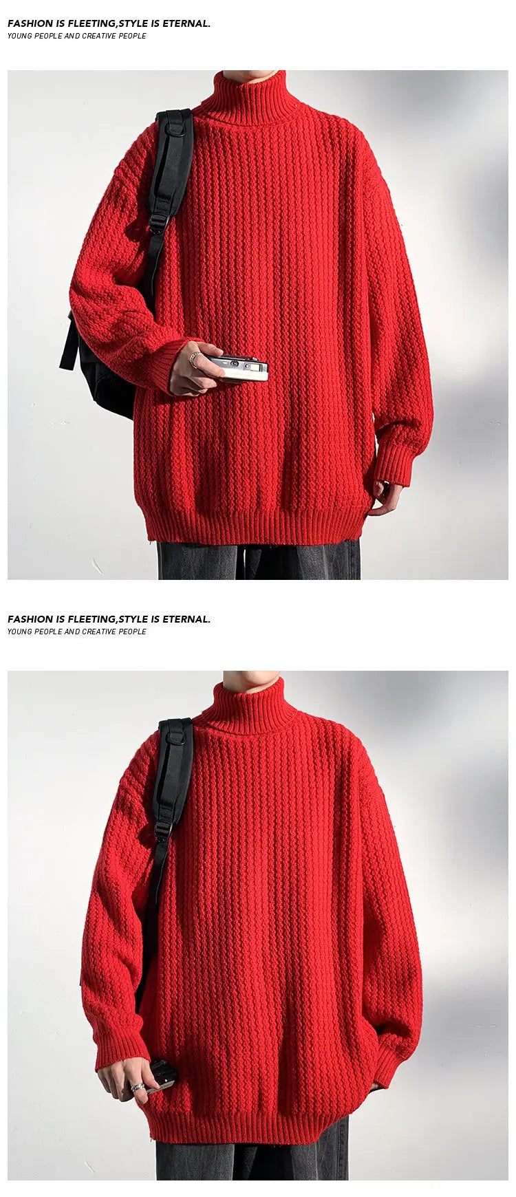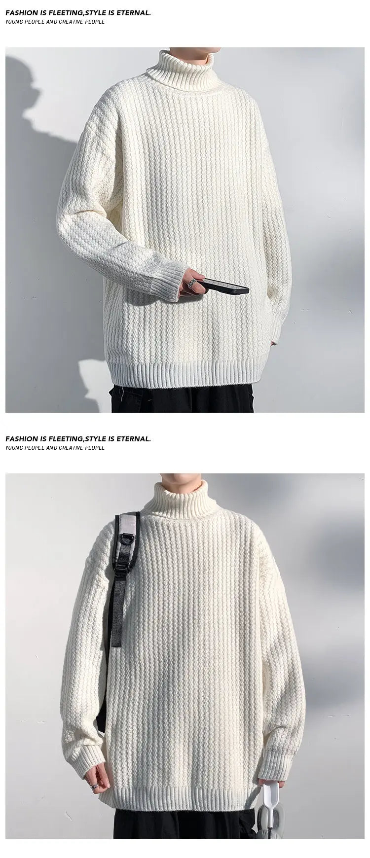 Sweater men 2025 New Men Knitwear Solid High Neck Sweater Soft Warm Comfortable Winter Pullover Fashion Casual Warm Sweater