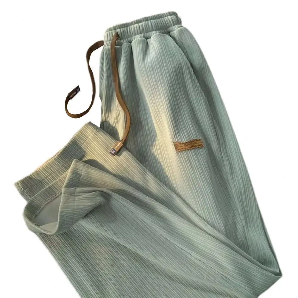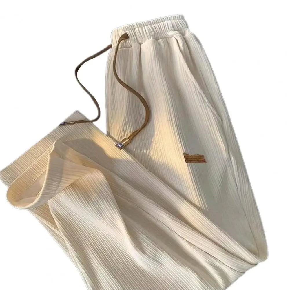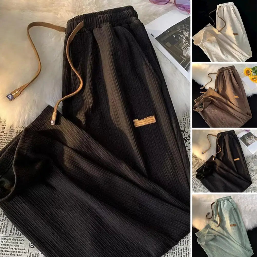 Trendy Casual Trousers Ribbed Versatile Fast Drying Men Ice Silk Running Fitness Trousers