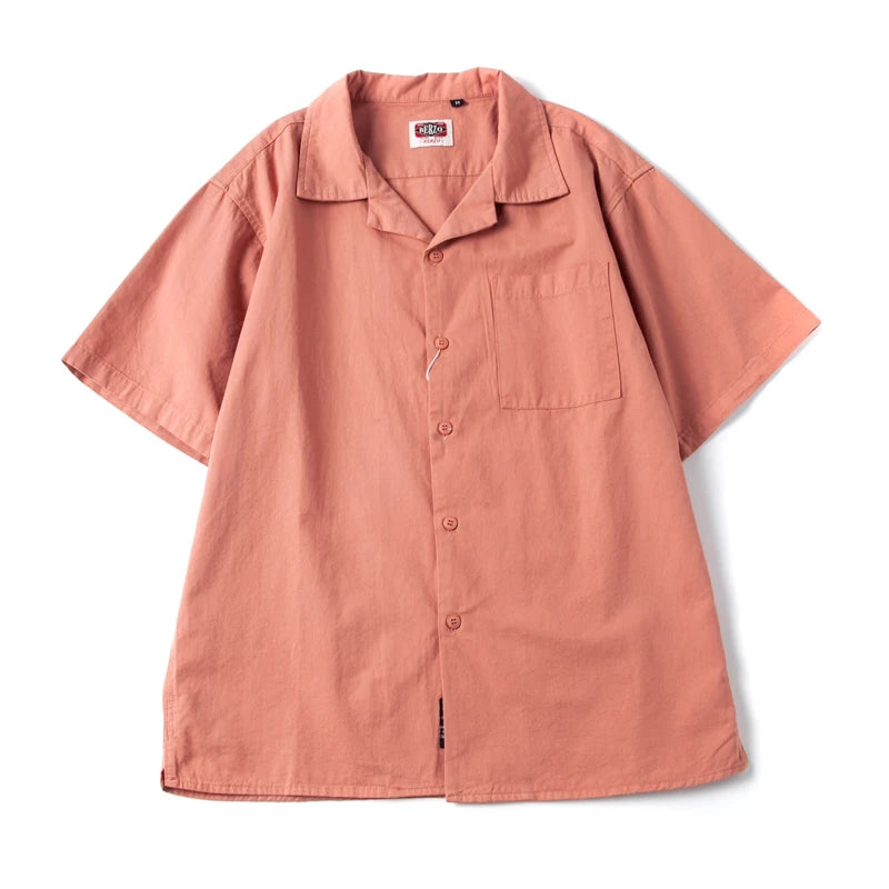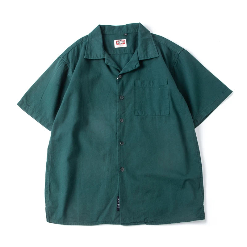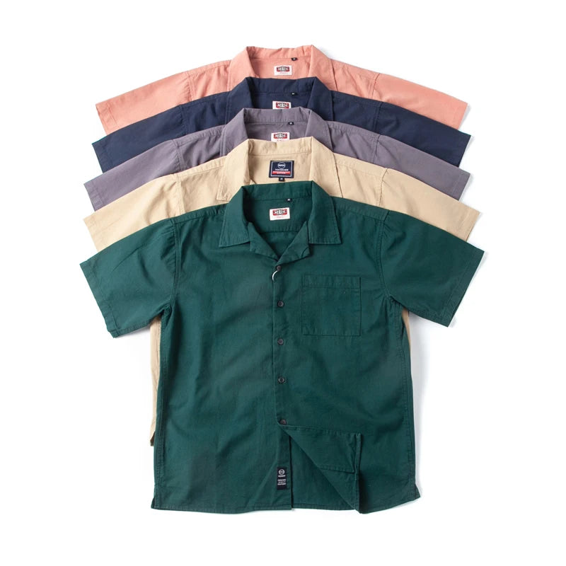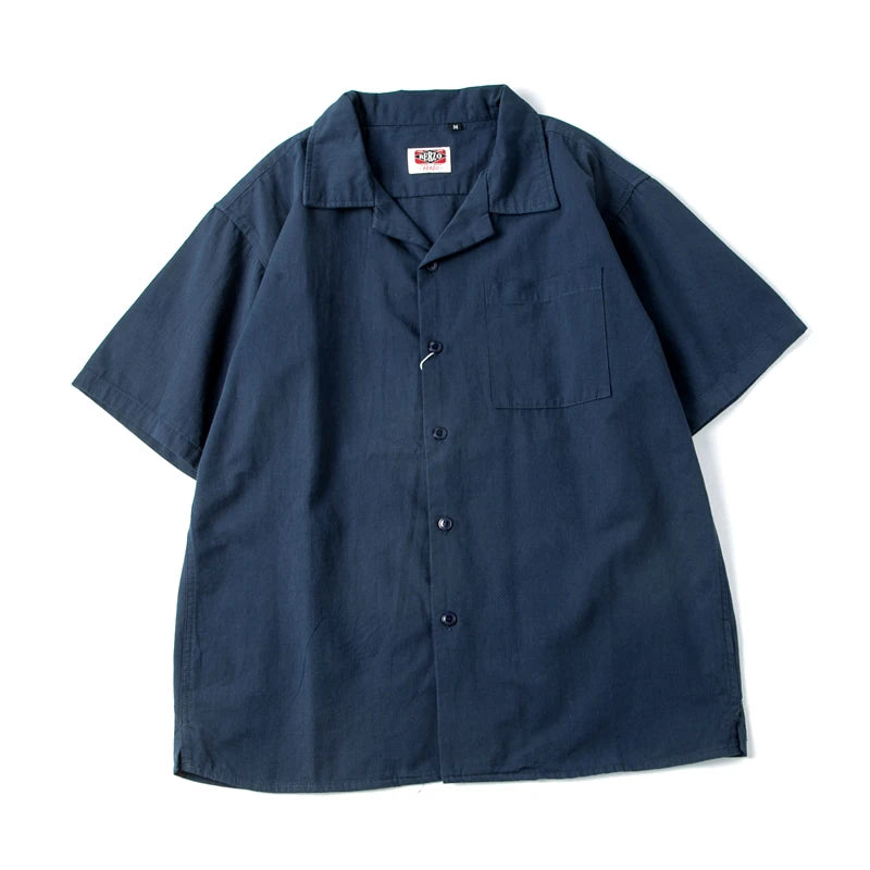American Retro Cotton Top Washing Men's Shirt Loose Japanese Summer Cuban Collar Short-sleeved Shirt Fashionable Handsome Top