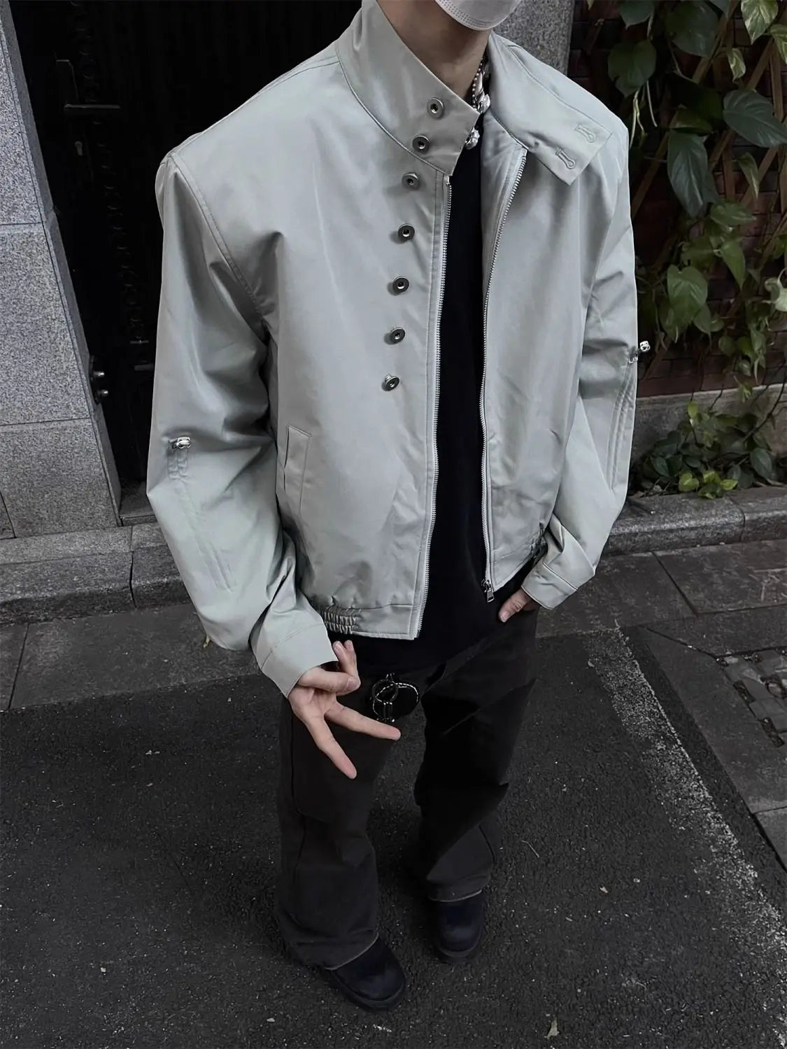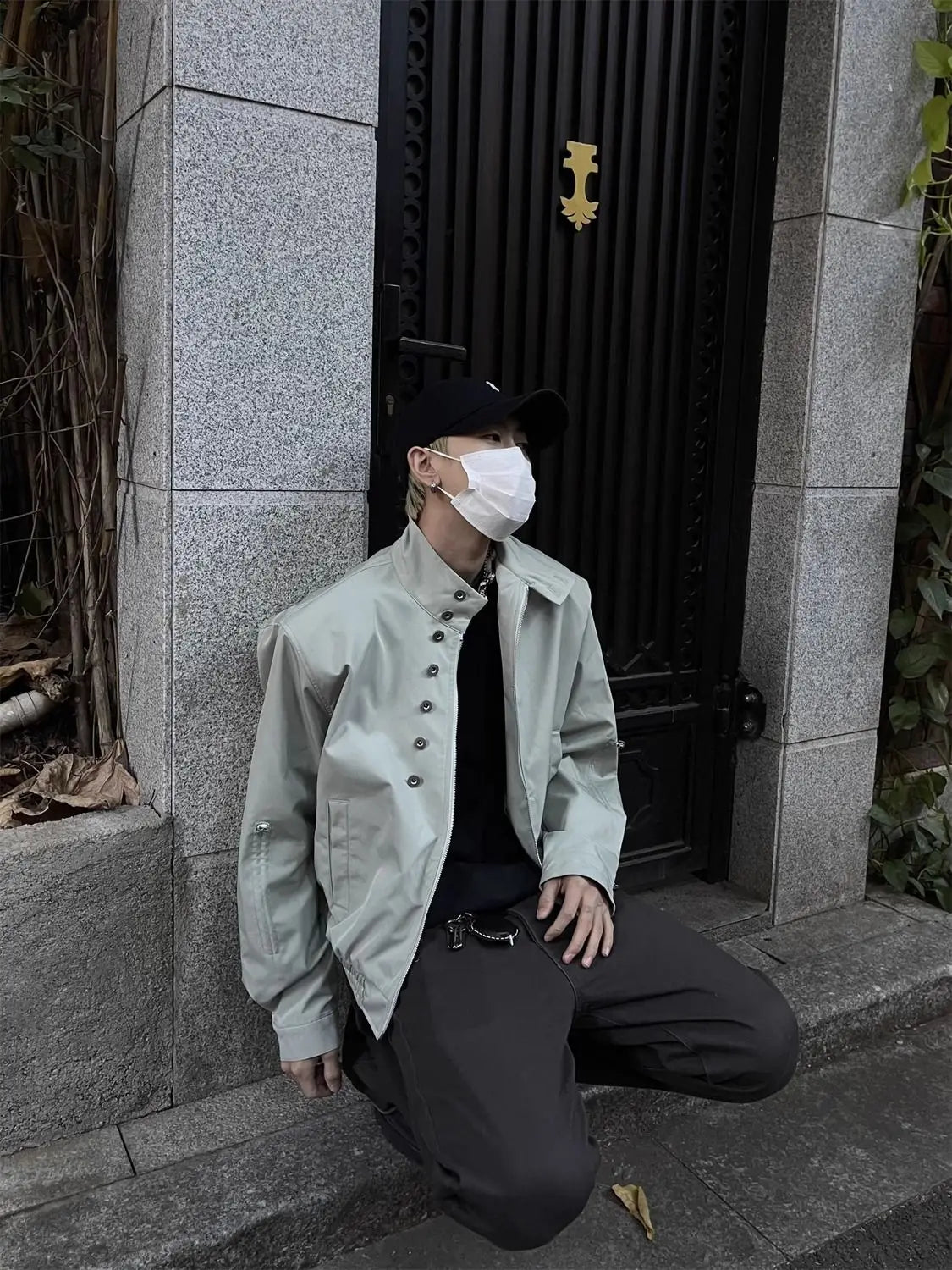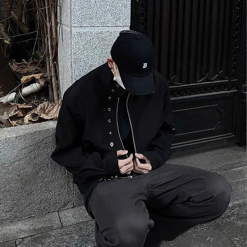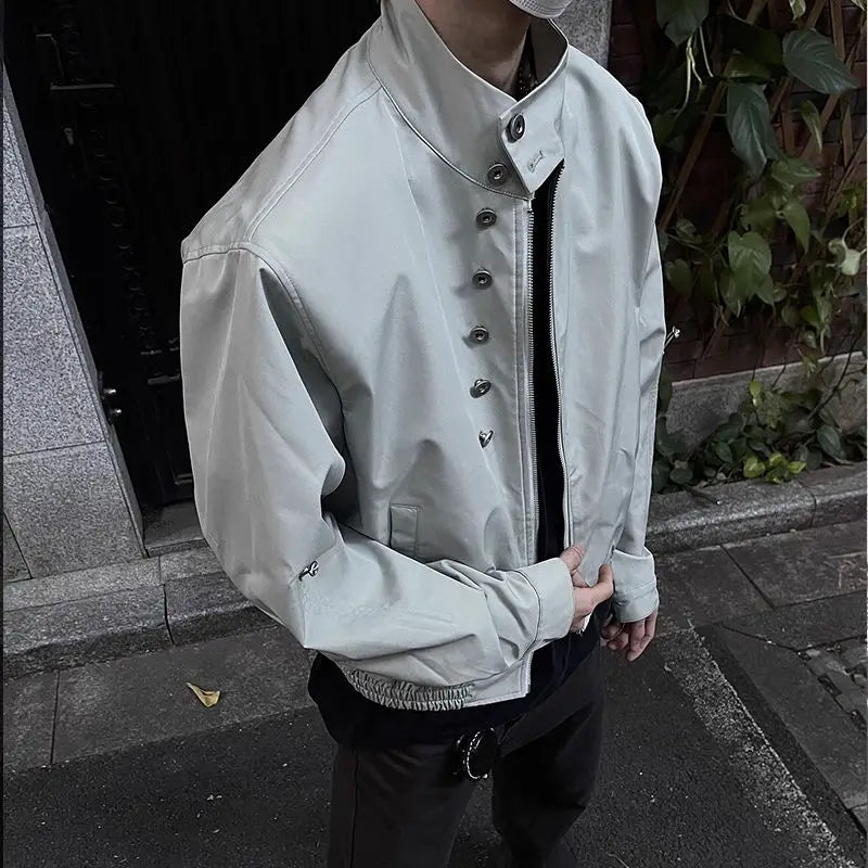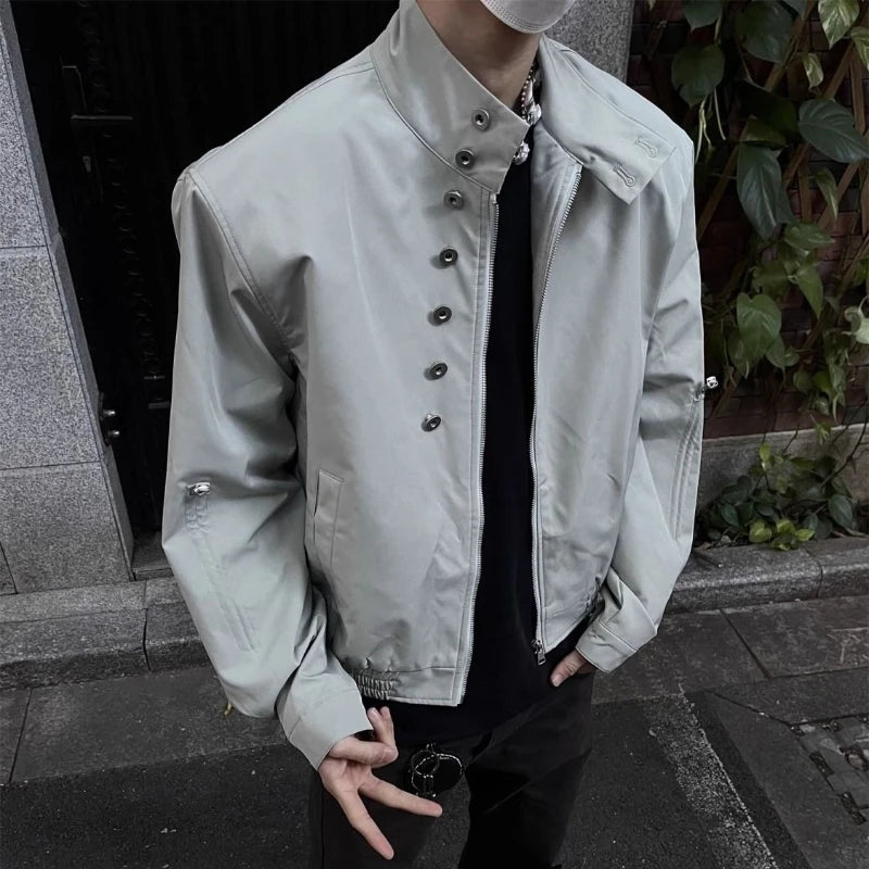 American Retro Multi-button Stand Collar Design Jacket Men Korean Hip Hop Coat High Street Hip-hop Solid Color Classic Jacket