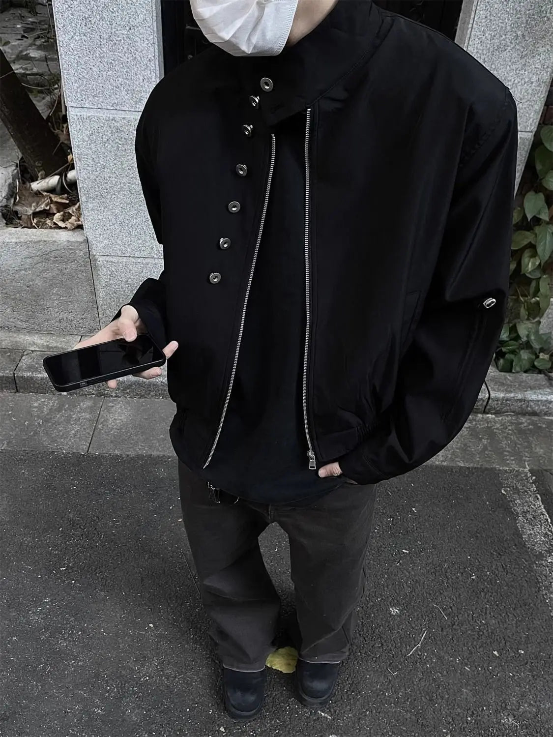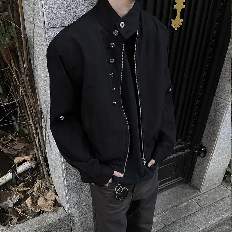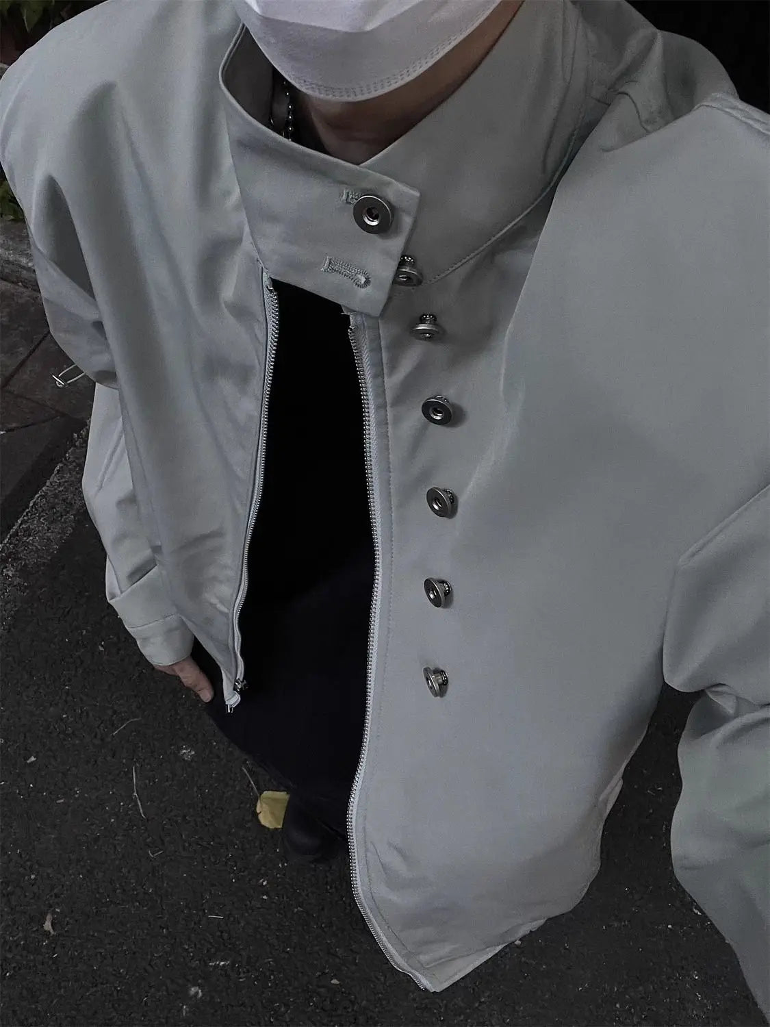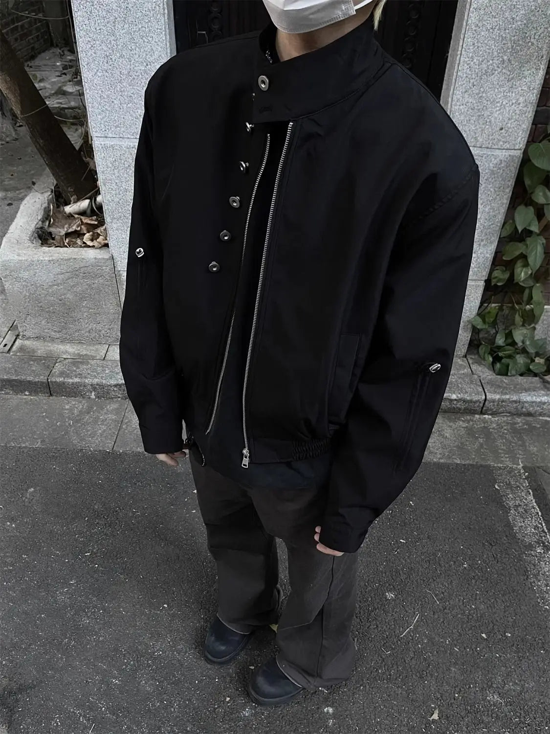 American Retro Multi-button Stand Collar Design Jacket Men Korean Hip Hop Coat High Street Hip-hop Solid Color Classic Jacket