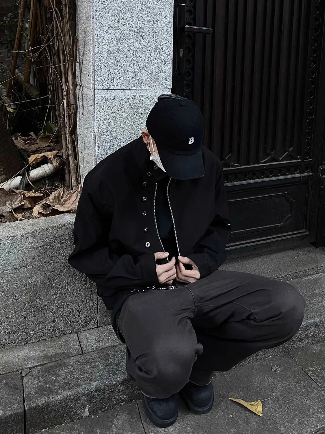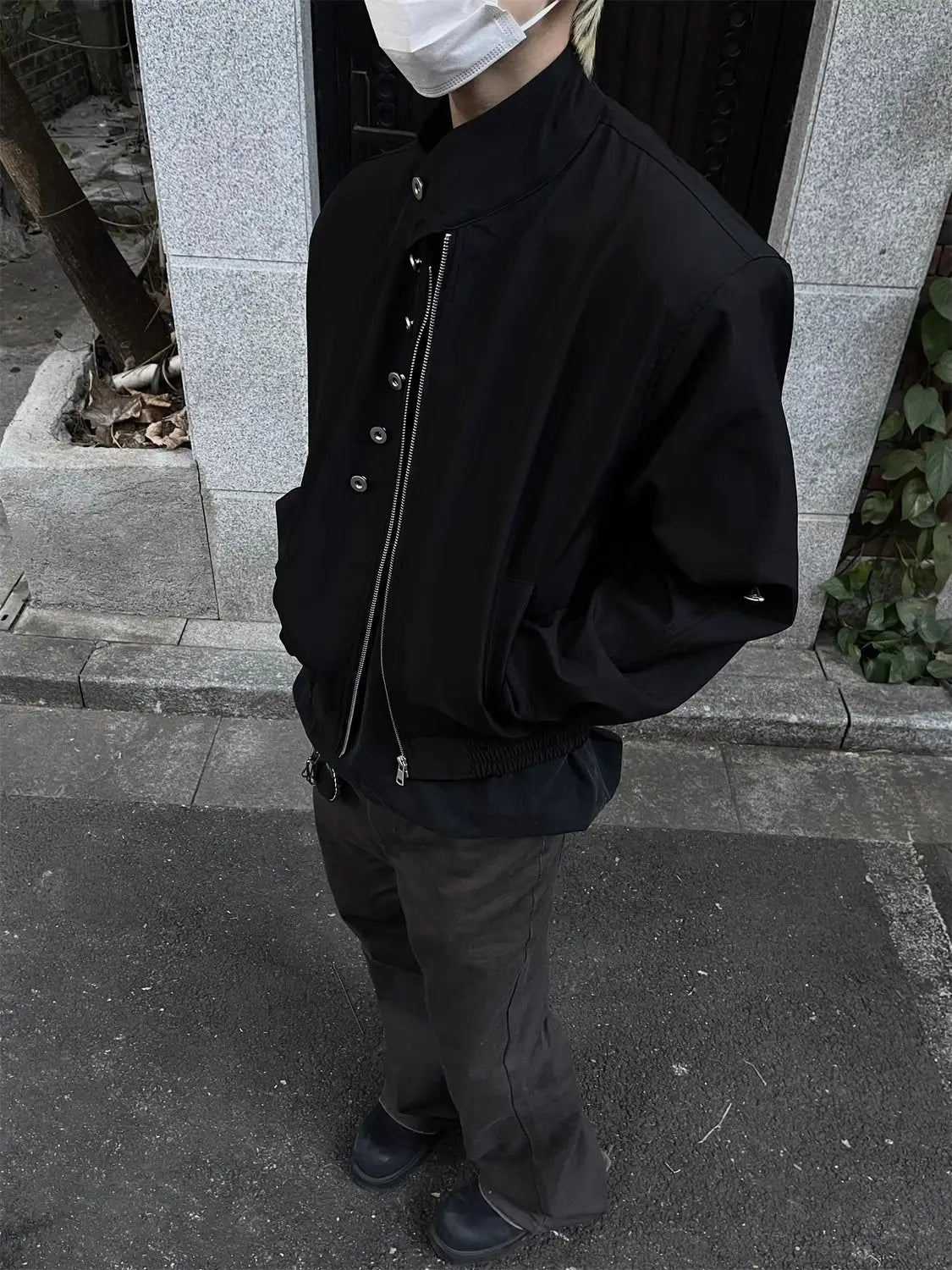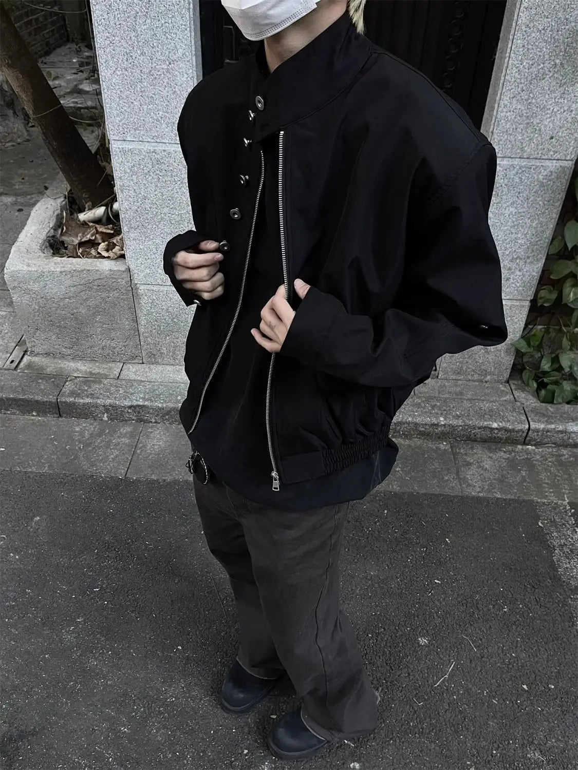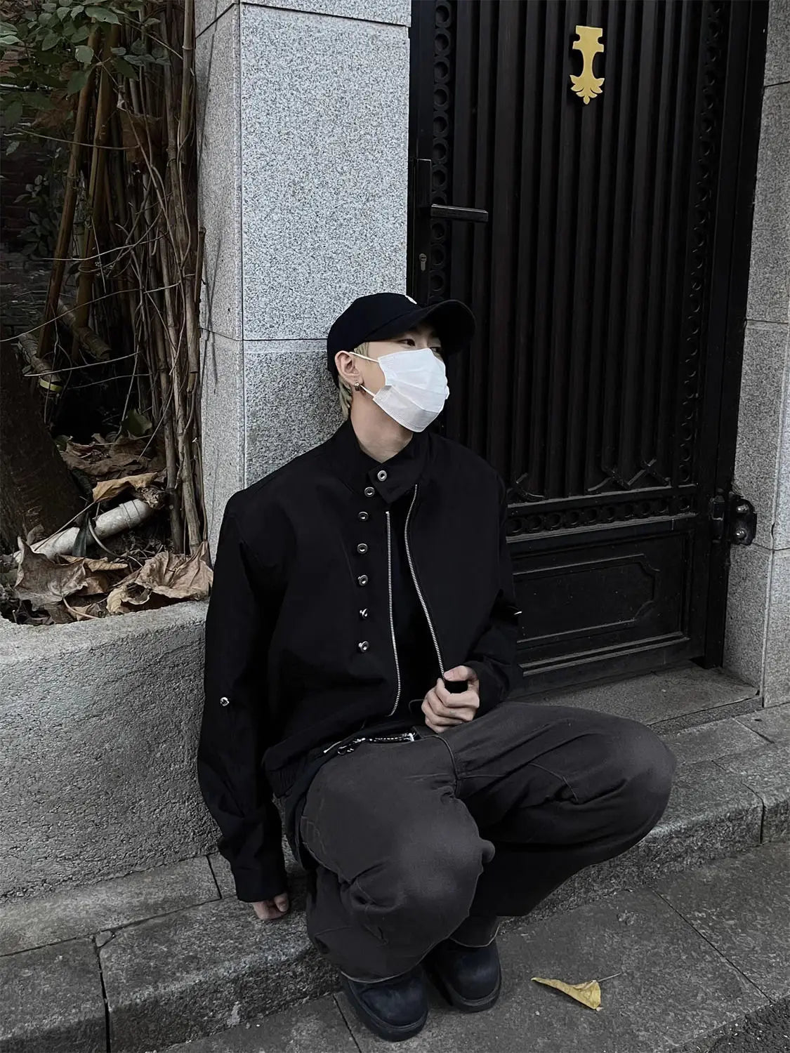 American Retro Multi-button Stand Collar Design Jacket Men Korean Hip Hop Coat High Street Hip-hop Solid Color Classic Jacket