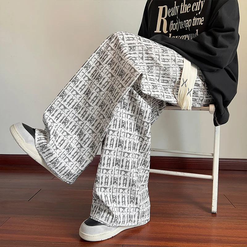 Autumn Vintage Skull Print Loose Straight Pant Men Summer New Fashion Trousers Street Hipster Casual Pants Mens Streetwear