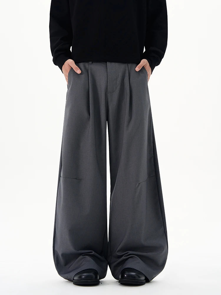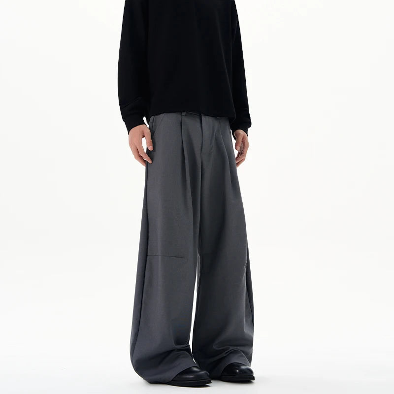 Autumn Men's Loose Suit Pants Commuting Business Casual Classic Gray Black Wide Legs Trousers Oversized Simple Style Clothes