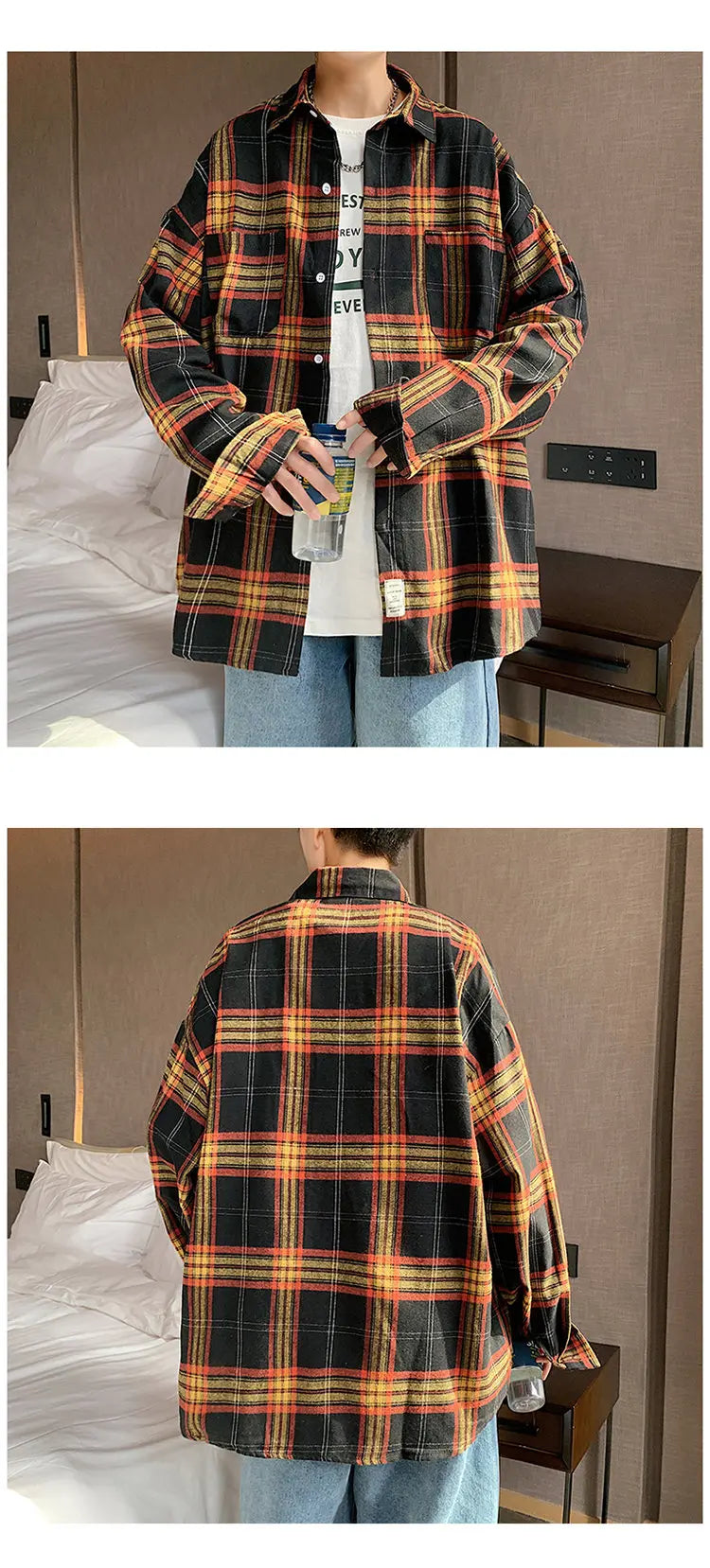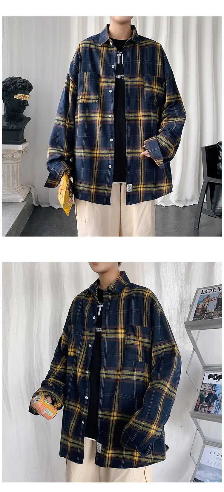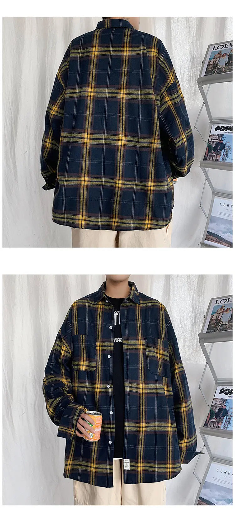 Autumn Oversized Long Sleeved Shirt Men Fashion Retro Plaid Shirt Men Streetwear Korean Loose Casual Shirts Mens Large Size 5XL