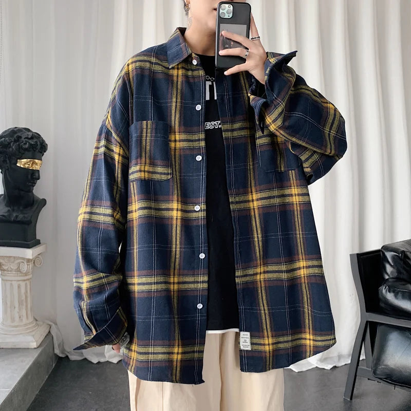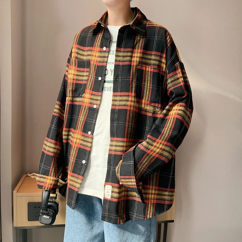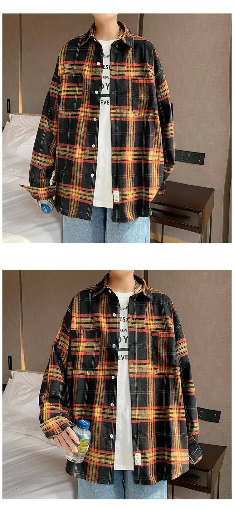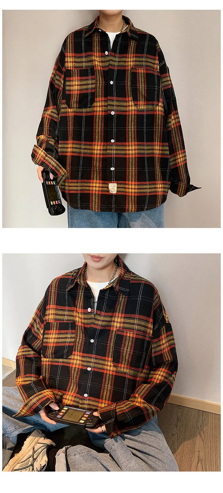 Autumn Oversized Long Sleeved Shirt Men Fashion Retro Plaid Shirt Men Streetwear Korean Loose Casual Shirts Mens Large Size 5XL