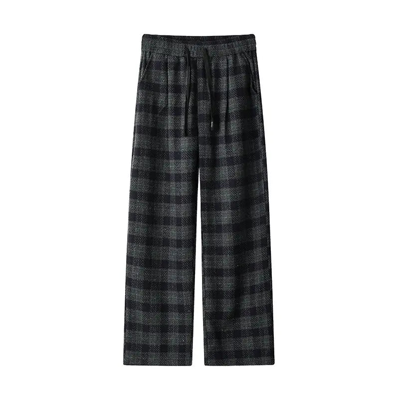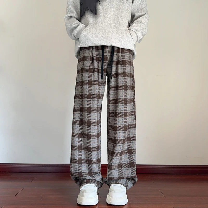 Autumn Woolen Pants Men Fashion Retro Casual Plaid Pants Men Streetwear Hip-hop Loose Wide Leg Pants Mens Vintage Trousers