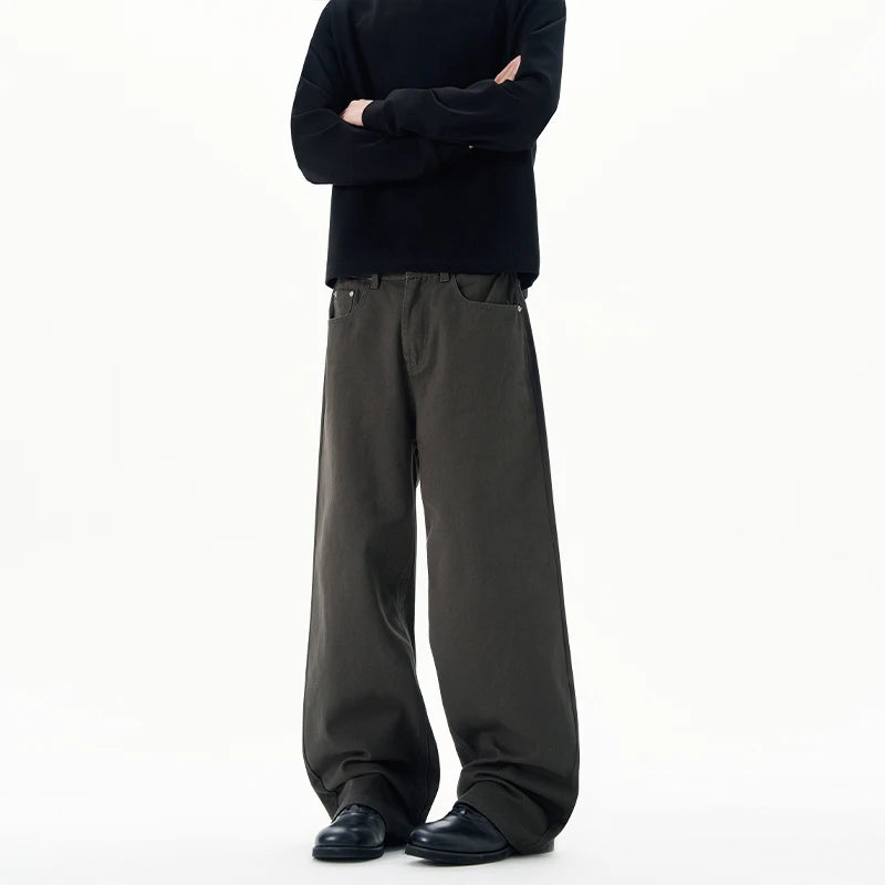 Baggy Wide-leg Jeans 100% Cotton Comfortable Breathable Autumn Casual Denim Pants Loose Straight Trousers Fashion Streetwear