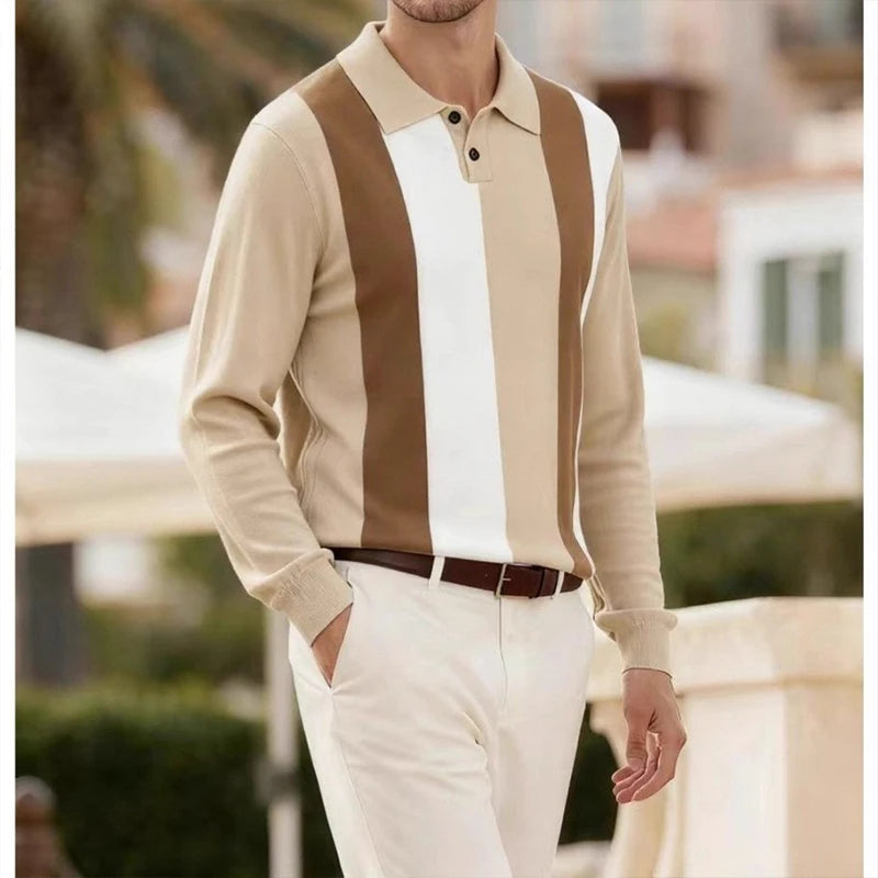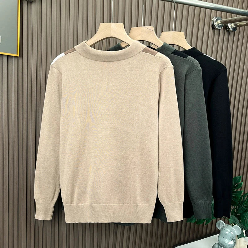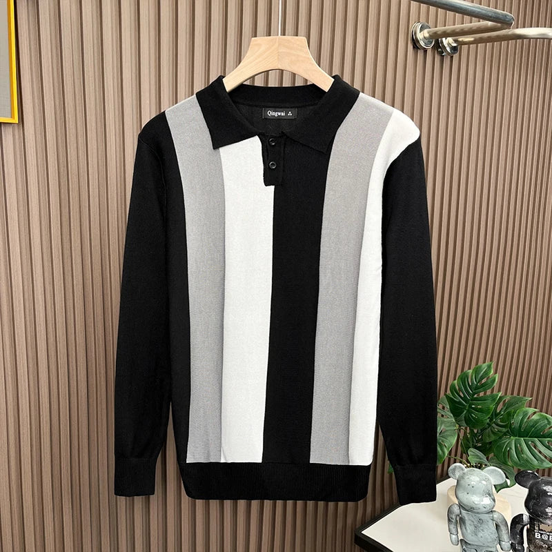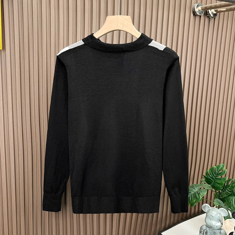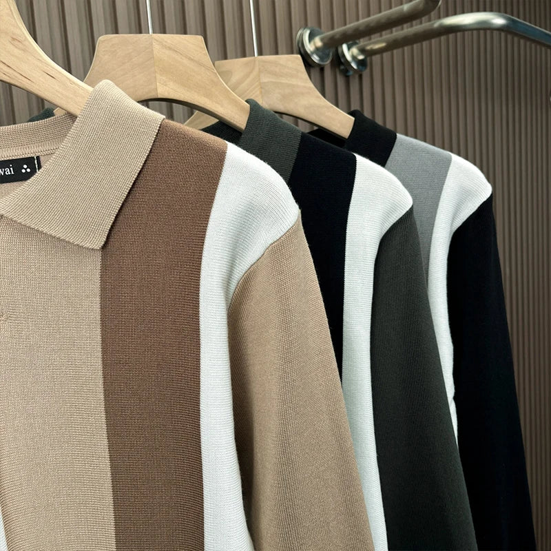 British Retro Men's Knitted Polo Shirt Light Luxury Patchwork Slim-fit Long Sleeve T-shirts Autumn Leisure Business Tops M-3XL
