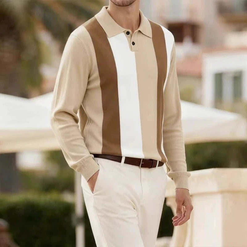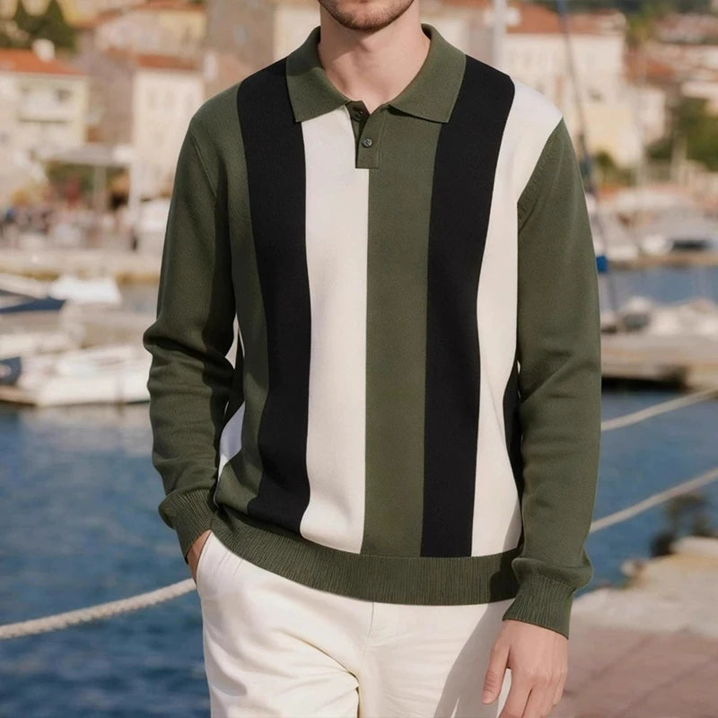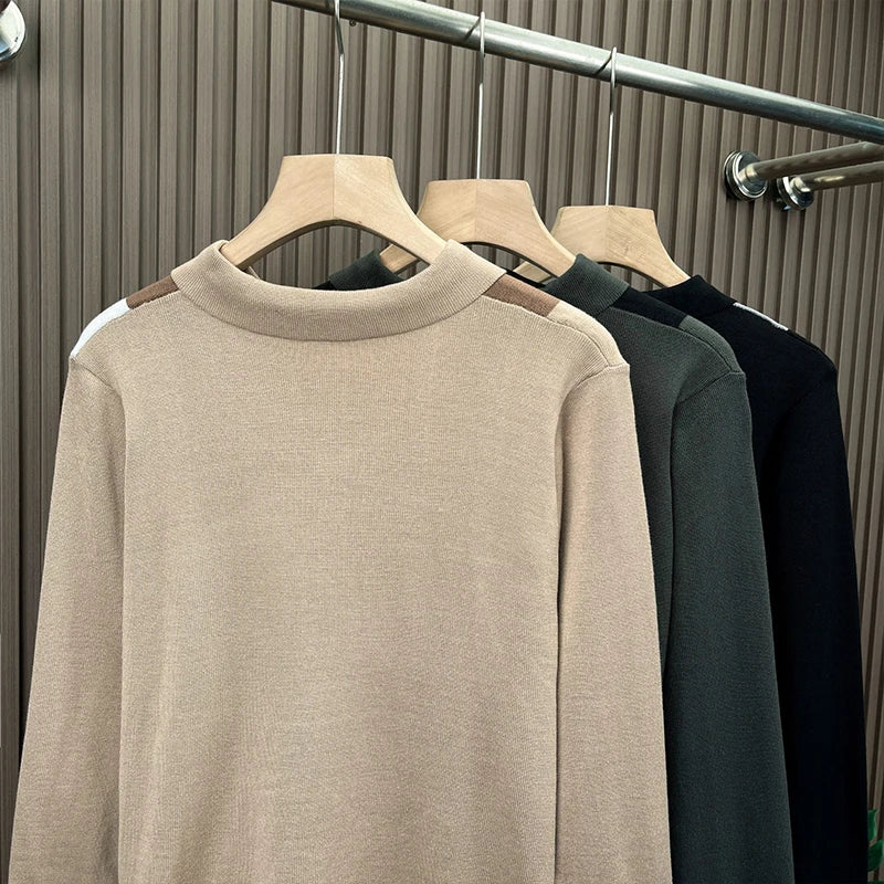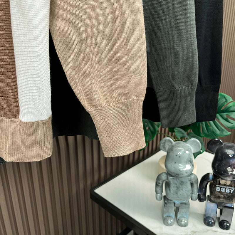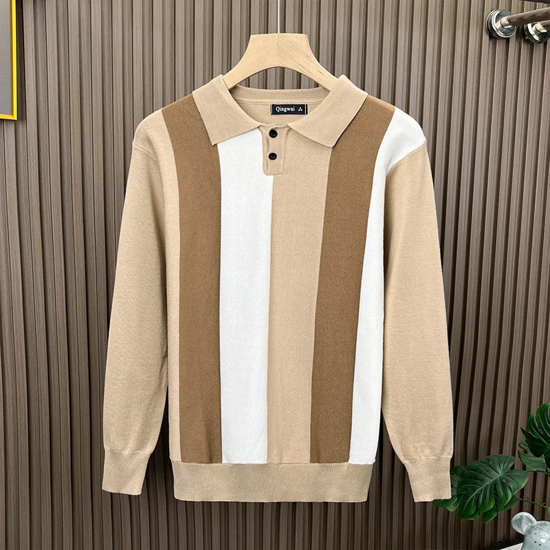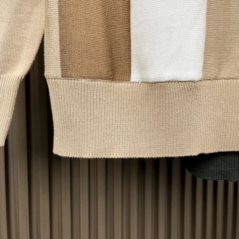 British Retro Men's Knitted Polo Shirt Light Luxury Patchwork Slim-fit Long Sleeve T-shirts Autumn Leisure Business Tops M-3XL