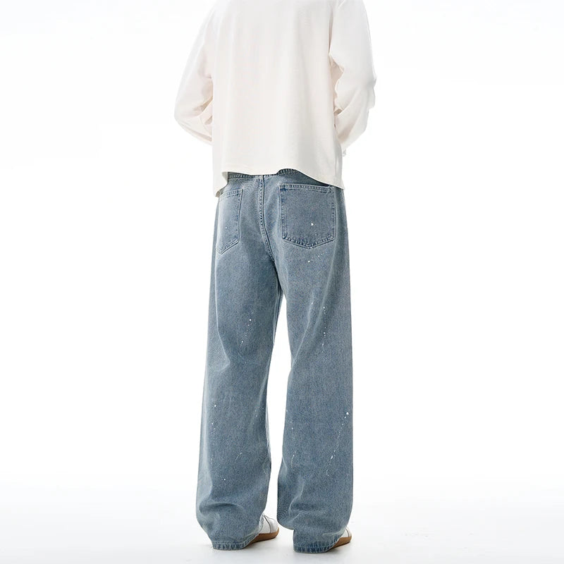 Fashion Graffiti Black Loose Wide-leg Jeans Men's Autumn New American Simple Basic Wash Denim Pants Loose Straight Trousers