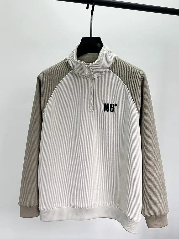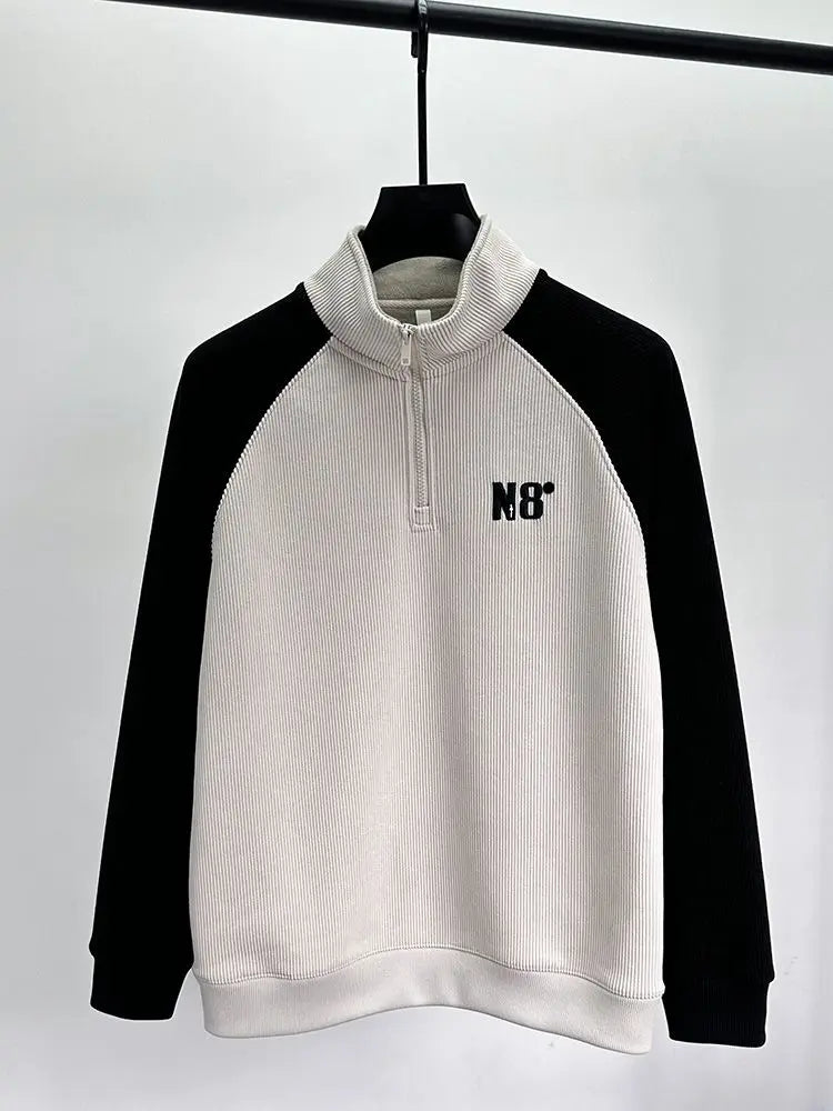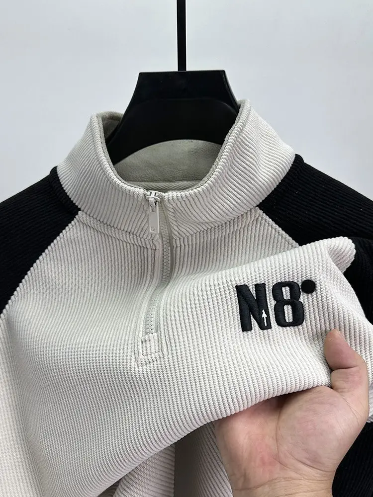 High-end Half-high Neck Zipper Sweatshirt Men's Velvet Thickened Trendy Color-blocking Raglan Sleeves Youth Long-sleeved T-shirt