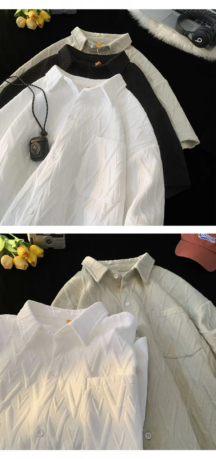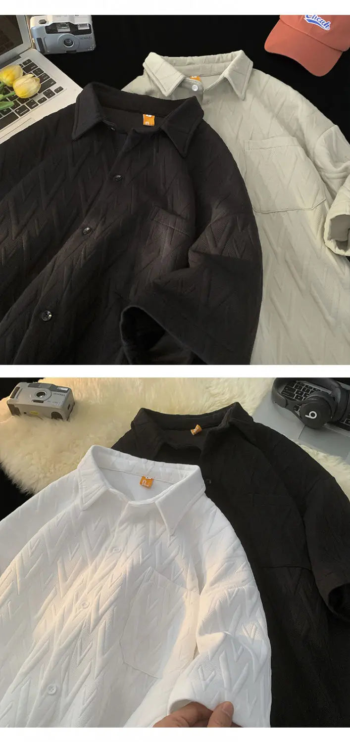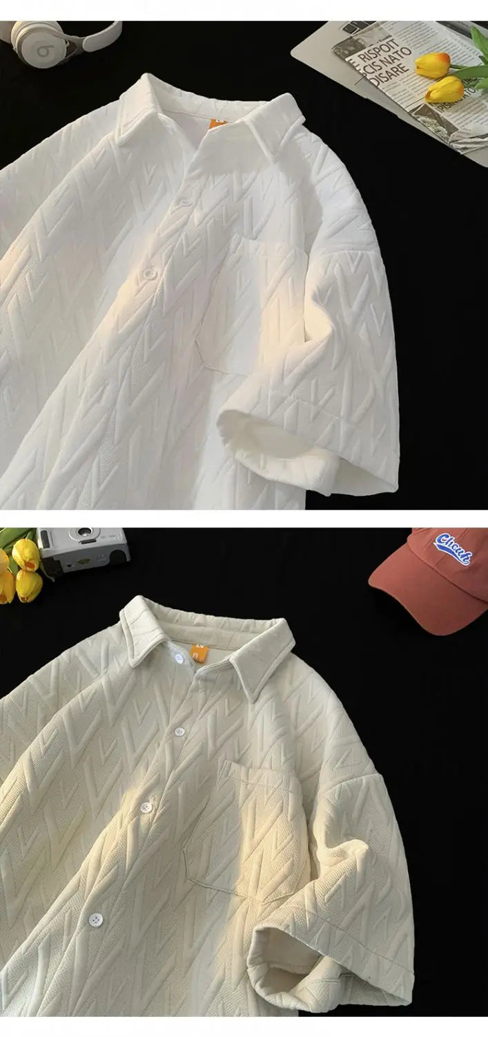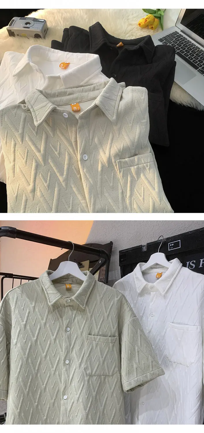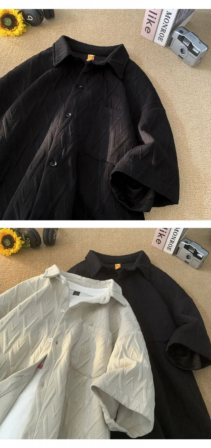 Japanese Cityboy Shirt High-end Polo Short-sleeved Shirt Men's Summer American Retro Lapel Tee Trend Loose Large Size Casual Top