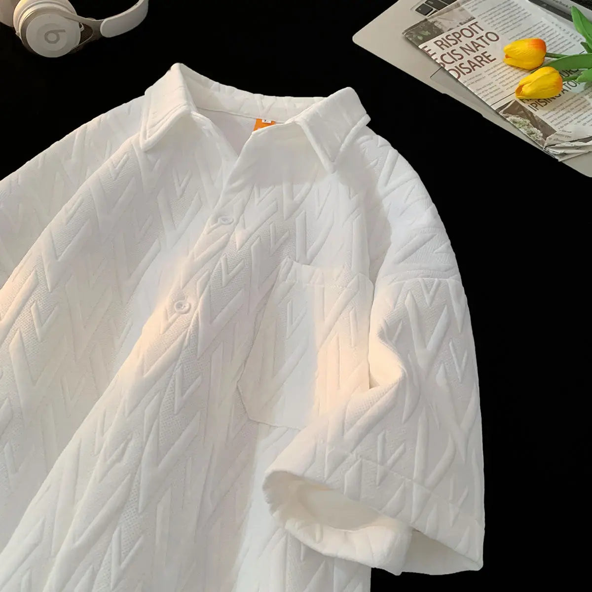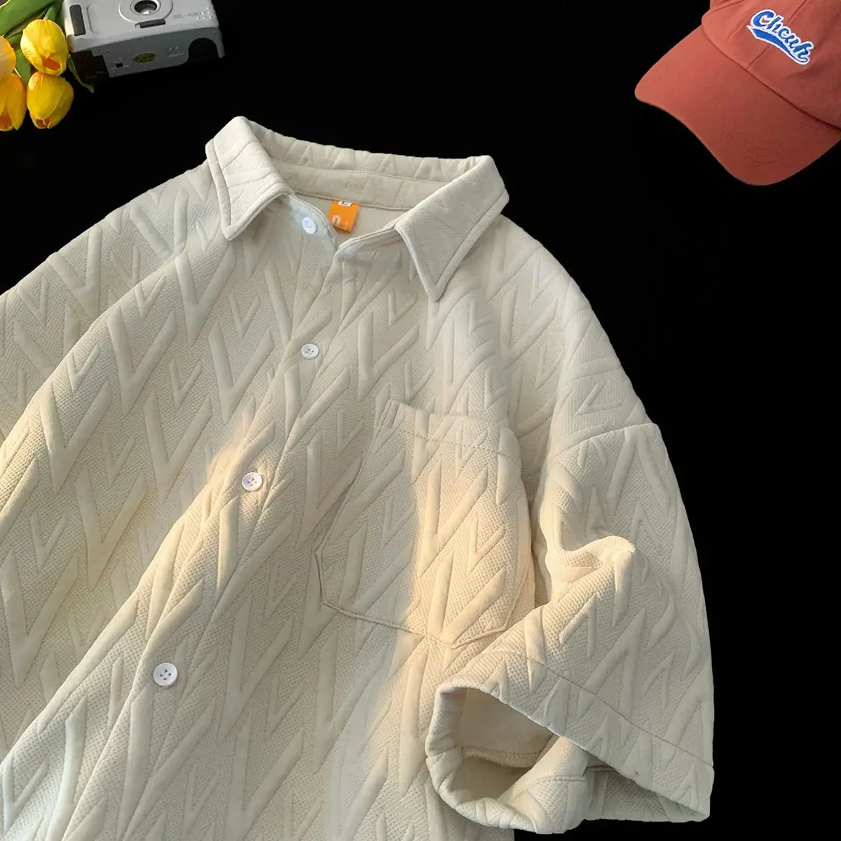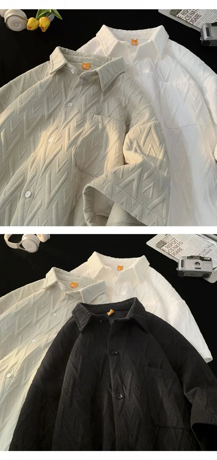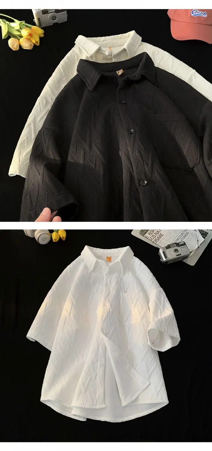 Japanese Cityboy Shirt High-end Polo Short-sleeved Shirt Men's Summer American Retro Lapel Tee Trend Loose Large Size Casual Top