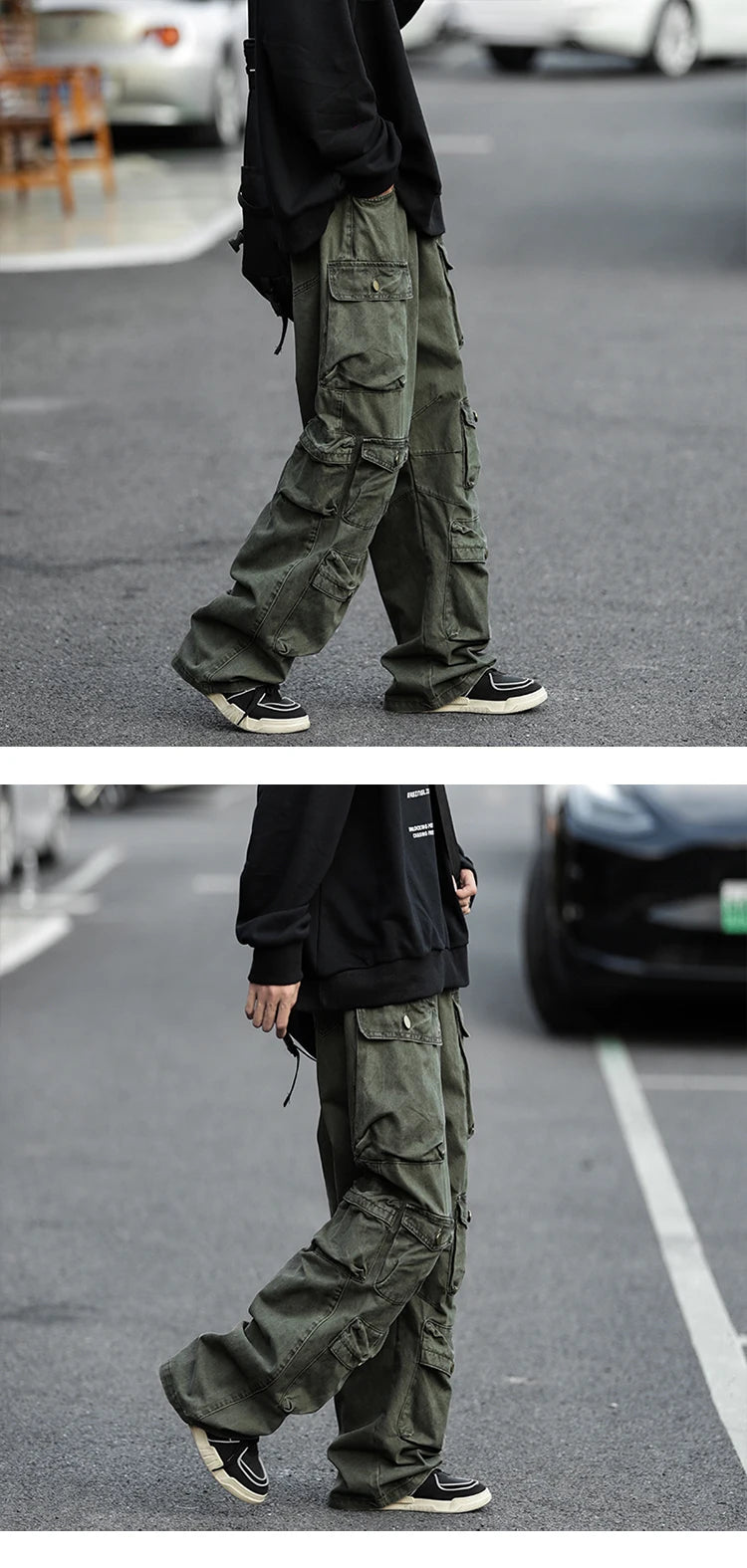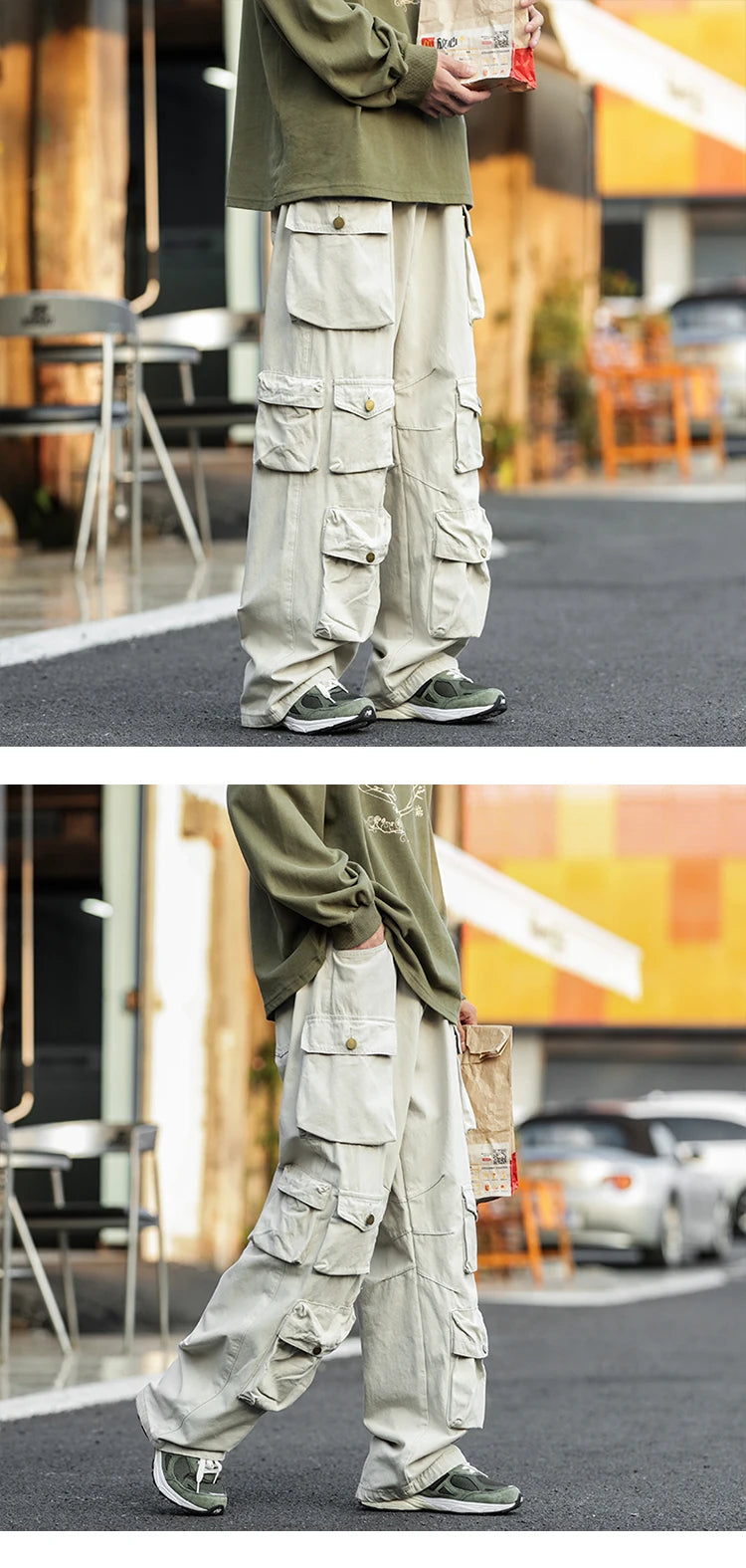 Japanese Multi-pocket Work Pants Men's Autumn Trendy Loose Straight Casual Pants Hip-hop Retro Design Trousers Aesthetic Chic