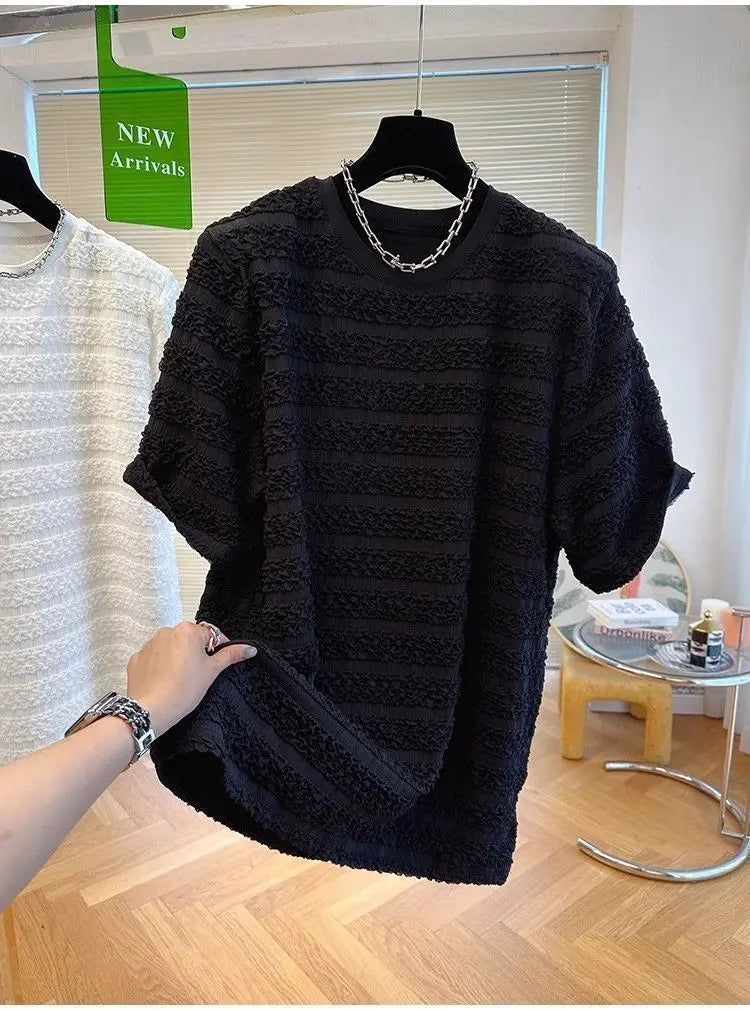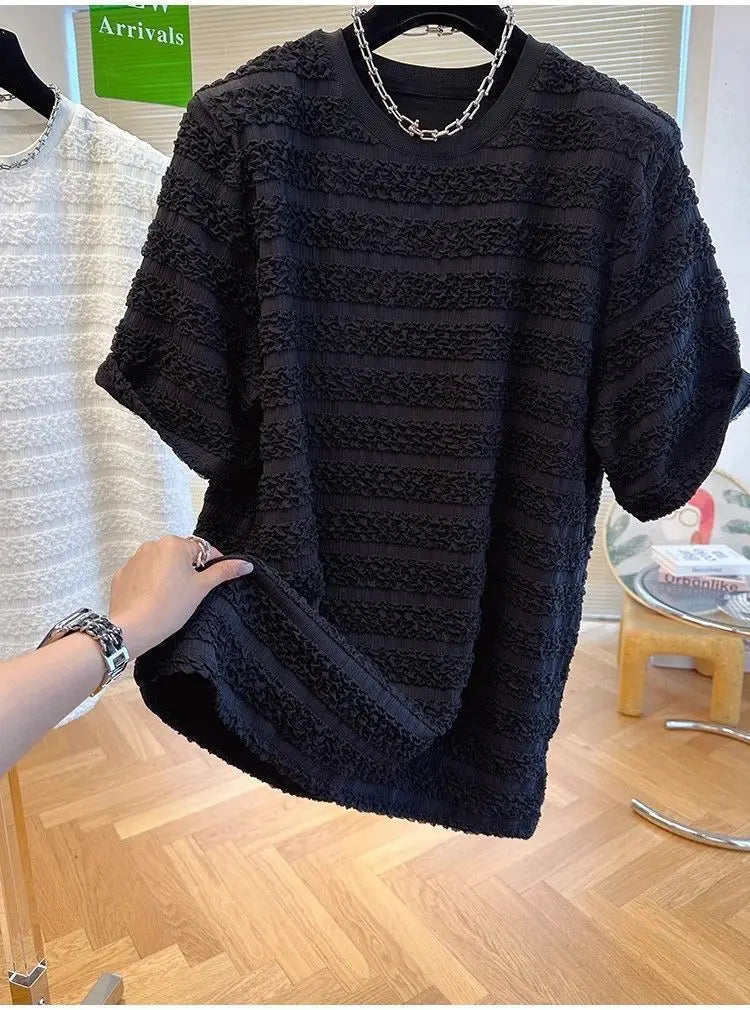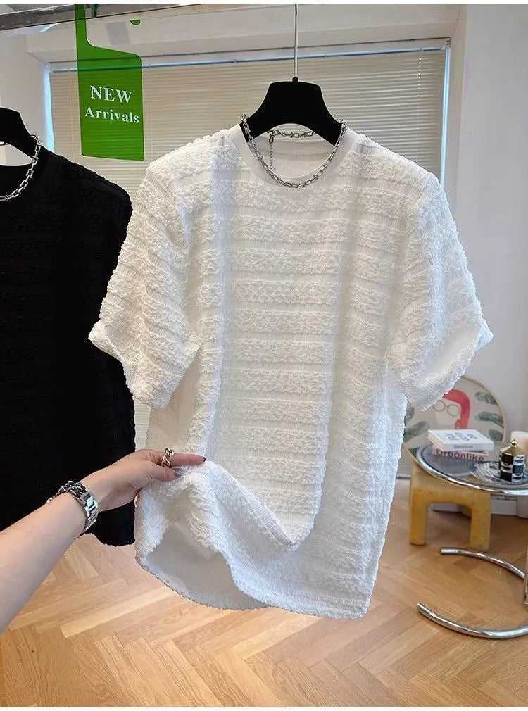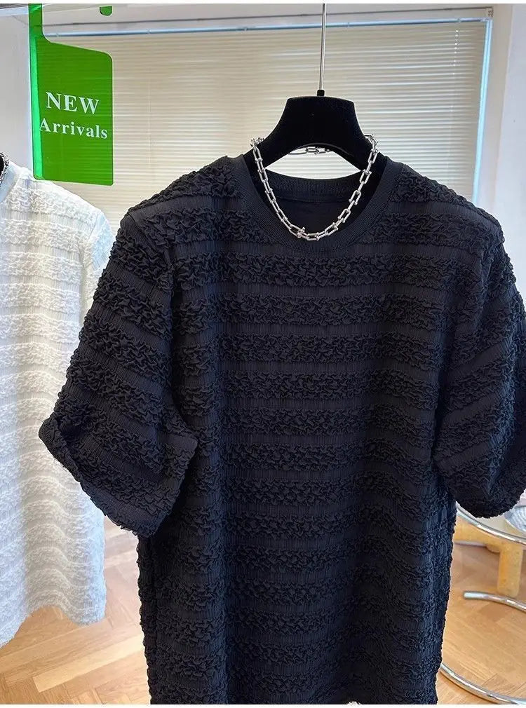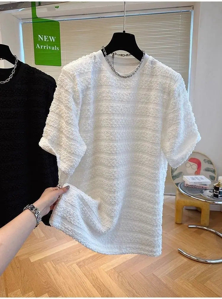 Light Luxury High-end Niche Texture T-shirt Men's Summer Handsome Short-sleeved Loose Fashionable Casual Bubble Yarn Top Chic