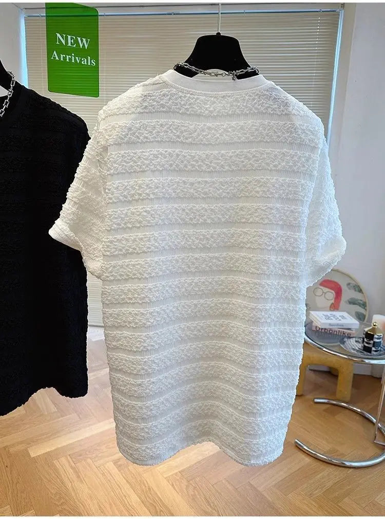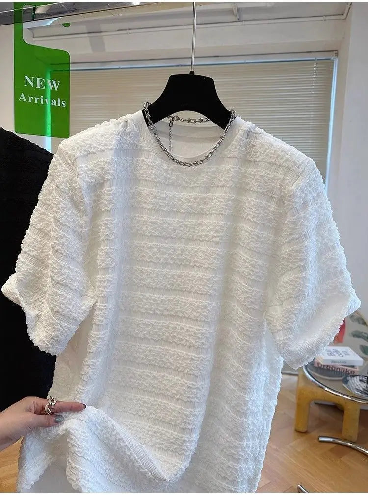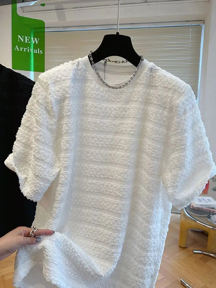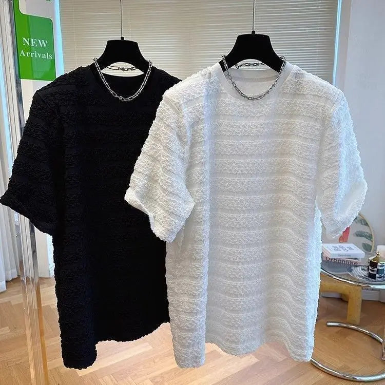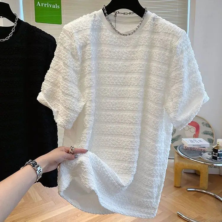 Light Luxury High-end Niche Texture T-shirt Men's Summer Handsome Short-sleeved Loose Fashionable Casual Bubble Yarn Top Chic