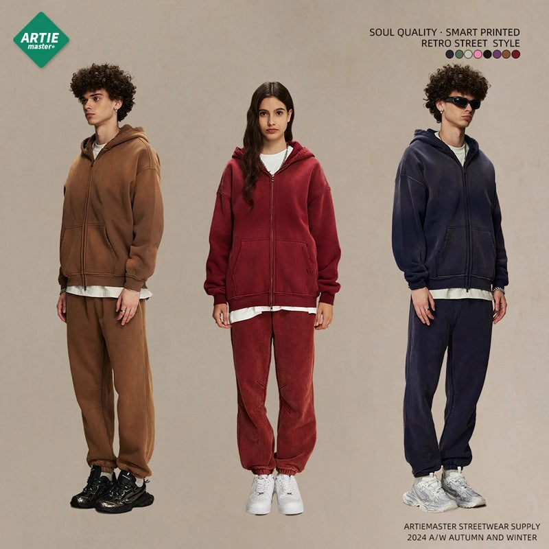 Men's Zip Up Hoodies Tie Dye Washed Double Oversize Cardigan Sweatshirt Loose Plus Plush Gradient Man Hooded Pullovers Winter