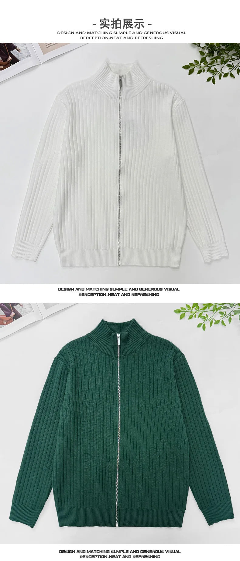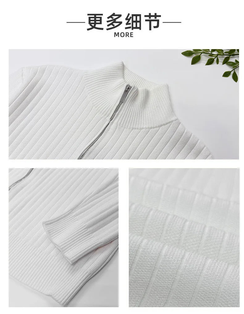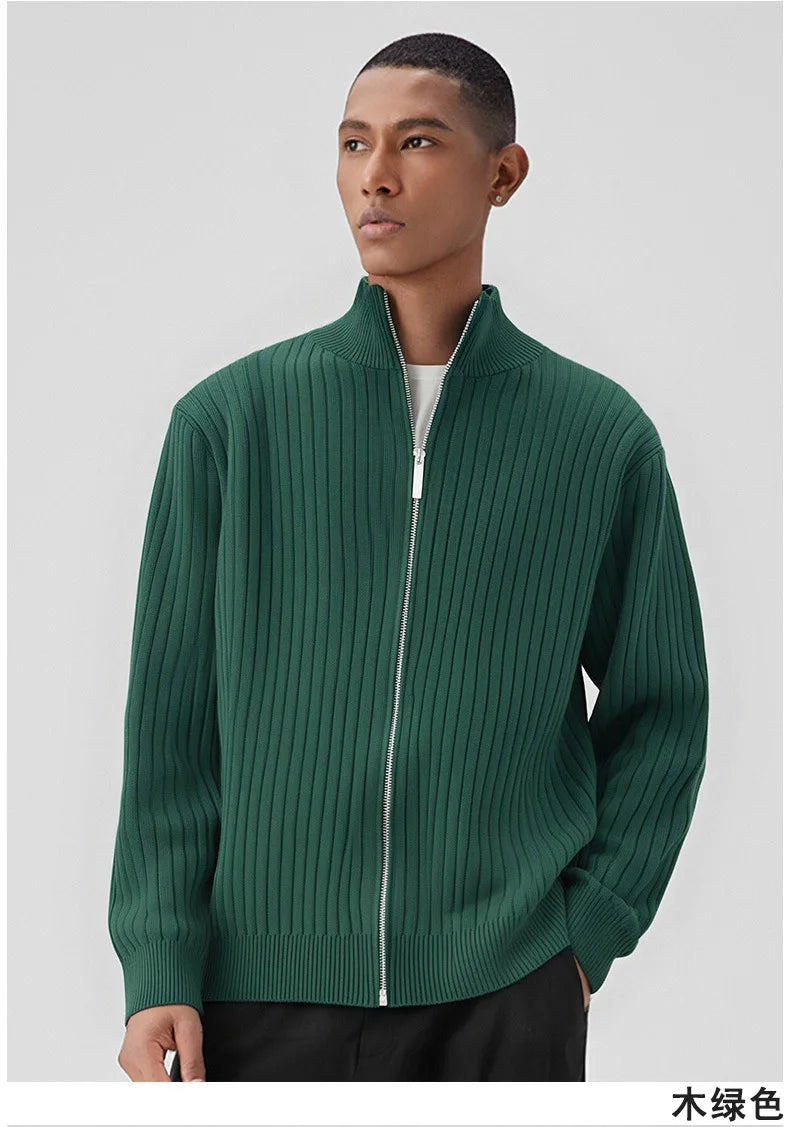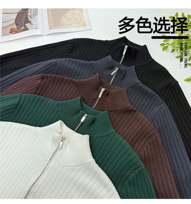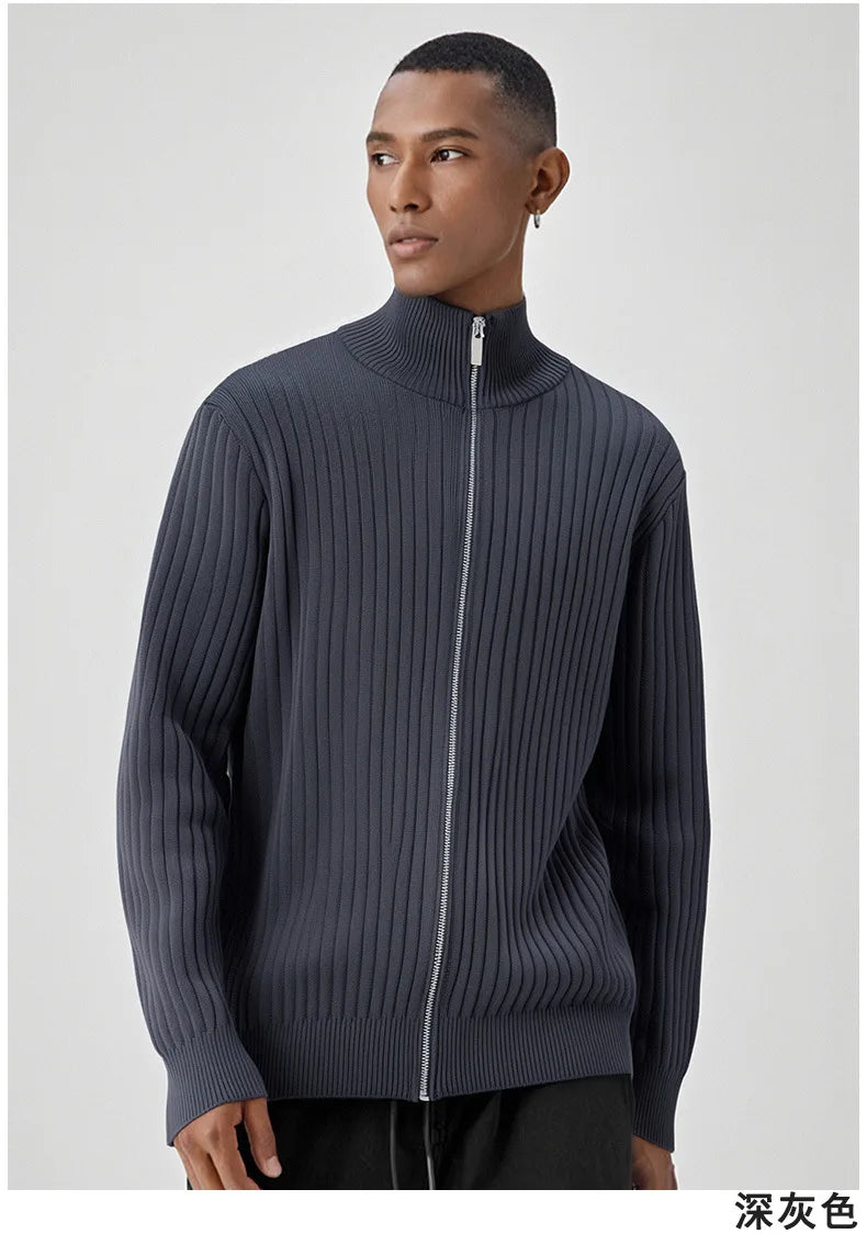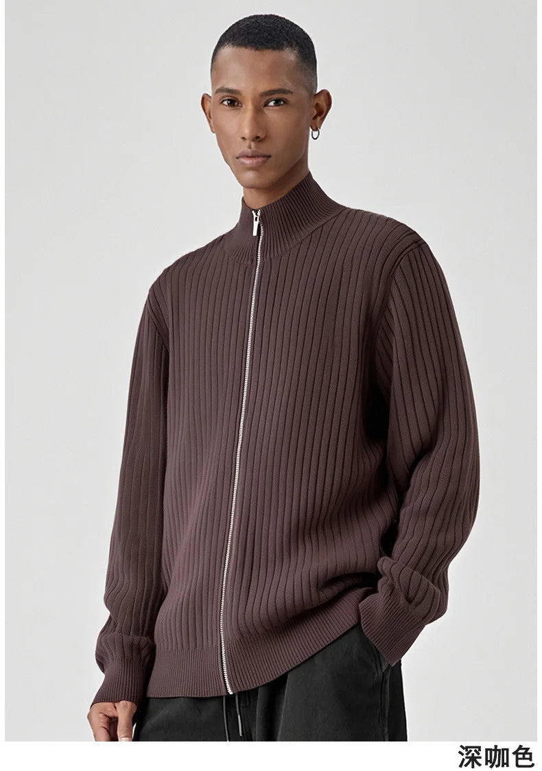 New Korean Fashion Men Cardigan Jacket Light Luxury Trendy Turtleneck Knit Zip-up Long Sleeve Sweater Coat High Quality Knitwear